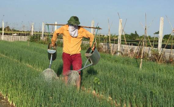 Nông dân Trung An gồng mình chống nắng cho hoa màu