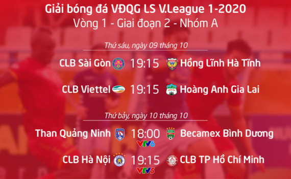 Lịch thi đấu và trực tiếp V.League 2020 vòng 1 – giai đoạn 2: Tâm điểm CLB Hà Nội – CLB TP Hồ Chí Minh (VTV5), Than Quảng Ninh – B. Bình Dương (VTV6)