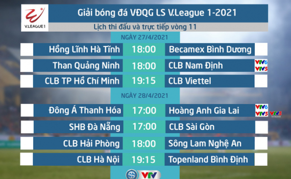 Lịch thi đấu và trực tiếp V.League 2021 vòng 11: Tâm điểm Đông Á Thanh Hoá – Hoàng Anh Gia Lai, Than Quảng Ninh – Nam Định