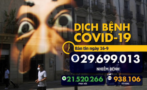 Tính đến 6h ngày 16-9 (giờ Việt Nam), toàn cầu có hơn 29,6 triệu người mắc COVID-19. Pfizer cho biết những người tham gia thử nghiệm vắcxin của hãng này...