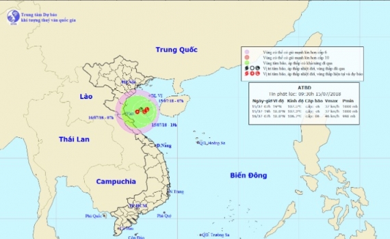Hồi 07 giờ ngày 15/7, vị trí trung tâm vùng áp thấp ở vào khoảng 18,5-19,5 độ Vĩ Bắc; 107,0-108,0 độ Kinh Đông, ngay trên khu vực phía Nam vịnh Bắc Bộ; do...