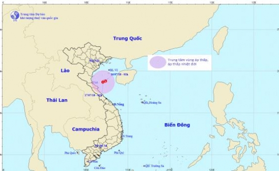 Tin về vùng áp thấp trên khu vực bắc biển Đông