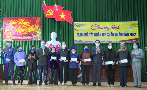 Trao quà tết cho hộ nghèo, hộ cận nghèo và hộ có hoàn cảnh khó khăn của xã Hòa Bình