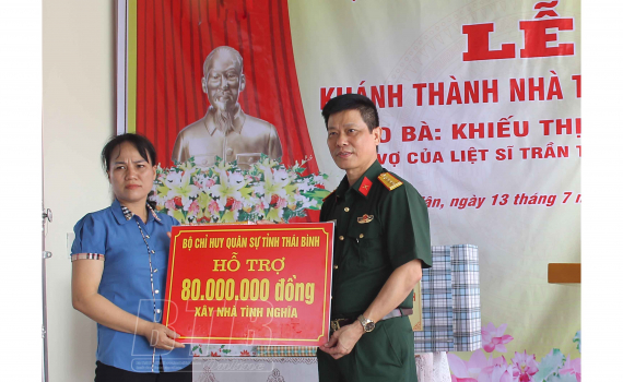 Sáng ngày 13/7, Bộ Chỉ huy Quân sự (CHQS) tỉnh phối hợp với Ban CHQS huyện Vũ Thư và xã Tự Tân, tổ chức lễ khánh thành nhà tình nghĩa cho bà Khiếu Thị Kim...