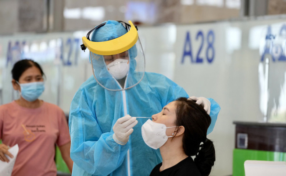 Xét nghiệm nhanh Covid-19 cho hành khách đi và đến TP Hồ Chí Minh tại sân bay Nội Bài