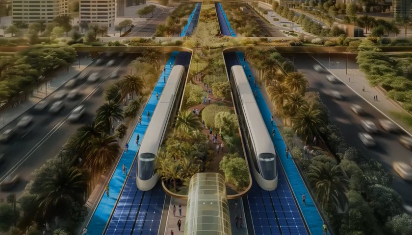 Xa lộ Green Spine (Dubai) dài 64 km, trồng hơn 1 triệu cây xanh và có thể sản xuất 300 MW điện mặt trời, đủ cung cấp cho khoảng 130.000 nhà.