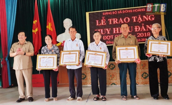 Đợt 7 năm 2018, huyện Đông Hưng trao tặng, truy tặng huy hiệu Đảng cho 198 đảng viên cao tuổi; trong đó có 13 đồng chí được tặng huy hiệu 70 năm, 2 đồng...