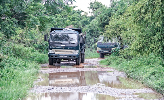 Bất chấp quy định về tải trọng, hiện nay, nhiều xe quá tải vẫn ngang nhiên lưu thông trên các tuyến đê khiến mặt đê bị xuống cấp, hư hỏng nghiêm trọng....