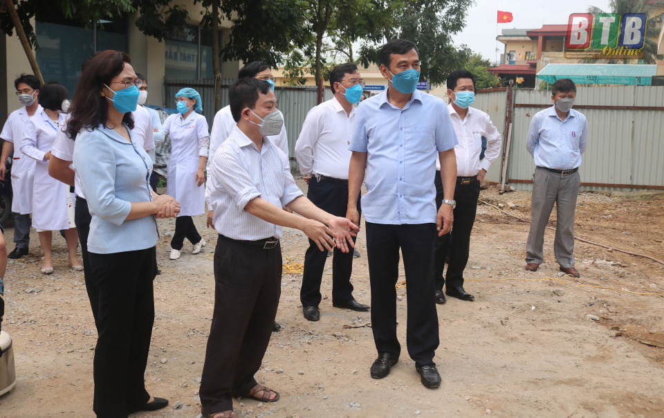 Tại Bệnh viện Đa khoa tỉnh, đồng chí Phó Bí thư Tỉnh ủy, Chủ tịch UBND tỉnh, Trưởng ban Chỉ đạo tỉnh và các đồng chí trong đoàn đã nghe lãnh đạo Bệnh viện báo cáo về các biện pháp tăng cường trong công tác phòng, chống dịch Covid-19 và tiến độ dự án làm đường vào Khoa Truyễn nhiễm. Về công tác phòng chống dịch, Bệnh viện đã triển khai theo đúng sự chỉ đạo của Bộ Y tế và UBND tỉnh, Sở Y tế, tổ chức phân luồng khu khám chữa bệnh, lập khai báo y tế, xây dựng kịch bản khi xảy ra tình huống, khoanh vùng khi có ca bệnh dương tính với Covid-19. Đối với những trường hợp nghi nghiễm chuyển từ Bệnh viện Bạch Mai đã được cách ly và theo dõi sức khỏe; Bệnh viện hạn chế tối đa việc thăm gặp, mọi nhu cầu thiết yếu đều được cán bộ, nhân viên Bệnh viện phục vụ tận nơi để tránh lây nhiễm chéo. Về dự án làm đường vào Khoa Truyền nhiễm, đến nay Bệnh viện đang gấp rút triển khai một số hạng mục để thuận tiện cho công tác phòng, chống dịch.