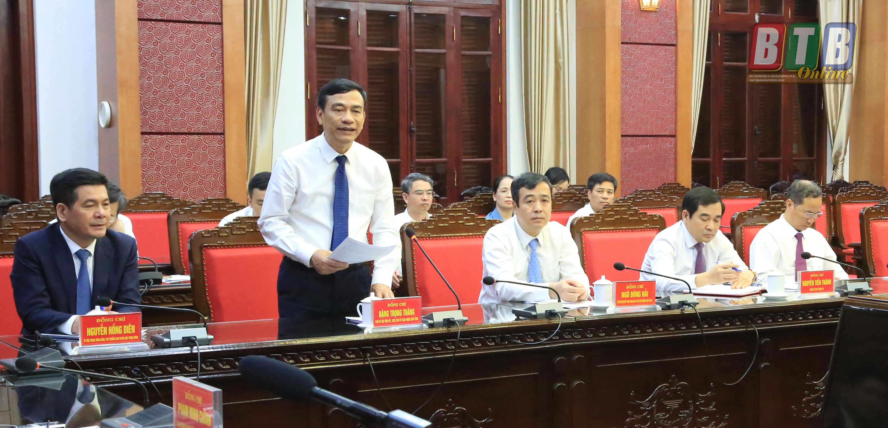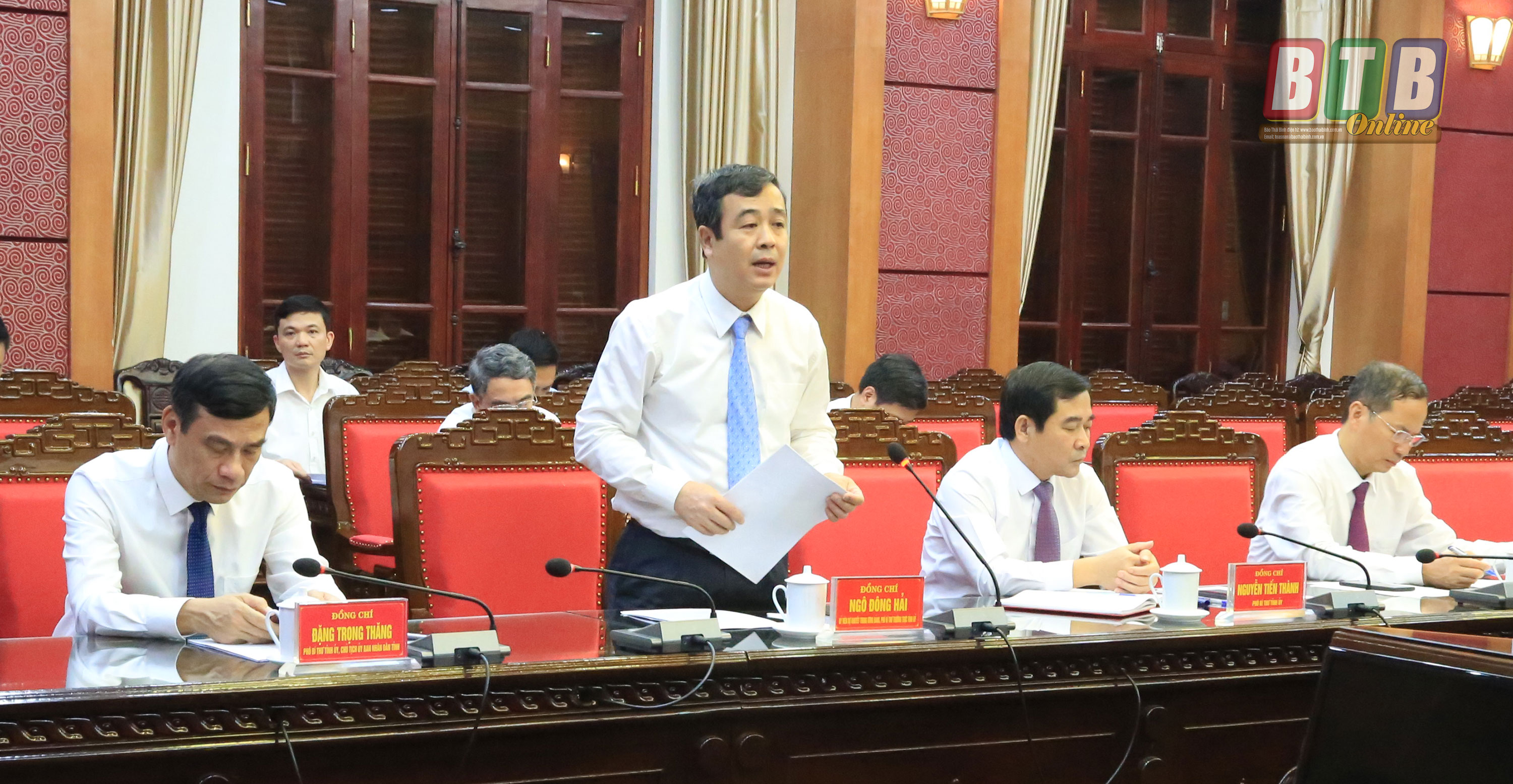 Thay mặt Ban Thường vụ Tỉnh uỷ, đồng chí Ngô Đông Hải, Uỷ viên dự khuyết Trung ương Đảng, Phó Bí thư thường trực Tỉnh uỷ đã báo cáo với Đoàn công tác về tình hình kinh tế - xã hội, quốc phòng - an ninh, đối ngoại; công tác tổ chức xây dựng Đảng, hệ thống chính trị trong những năm qua và công tác chuẩn bị đại hội đảng bộ các cấp nhiệm kỳ 2020 - 2025 của tỉnh Thái Bình.