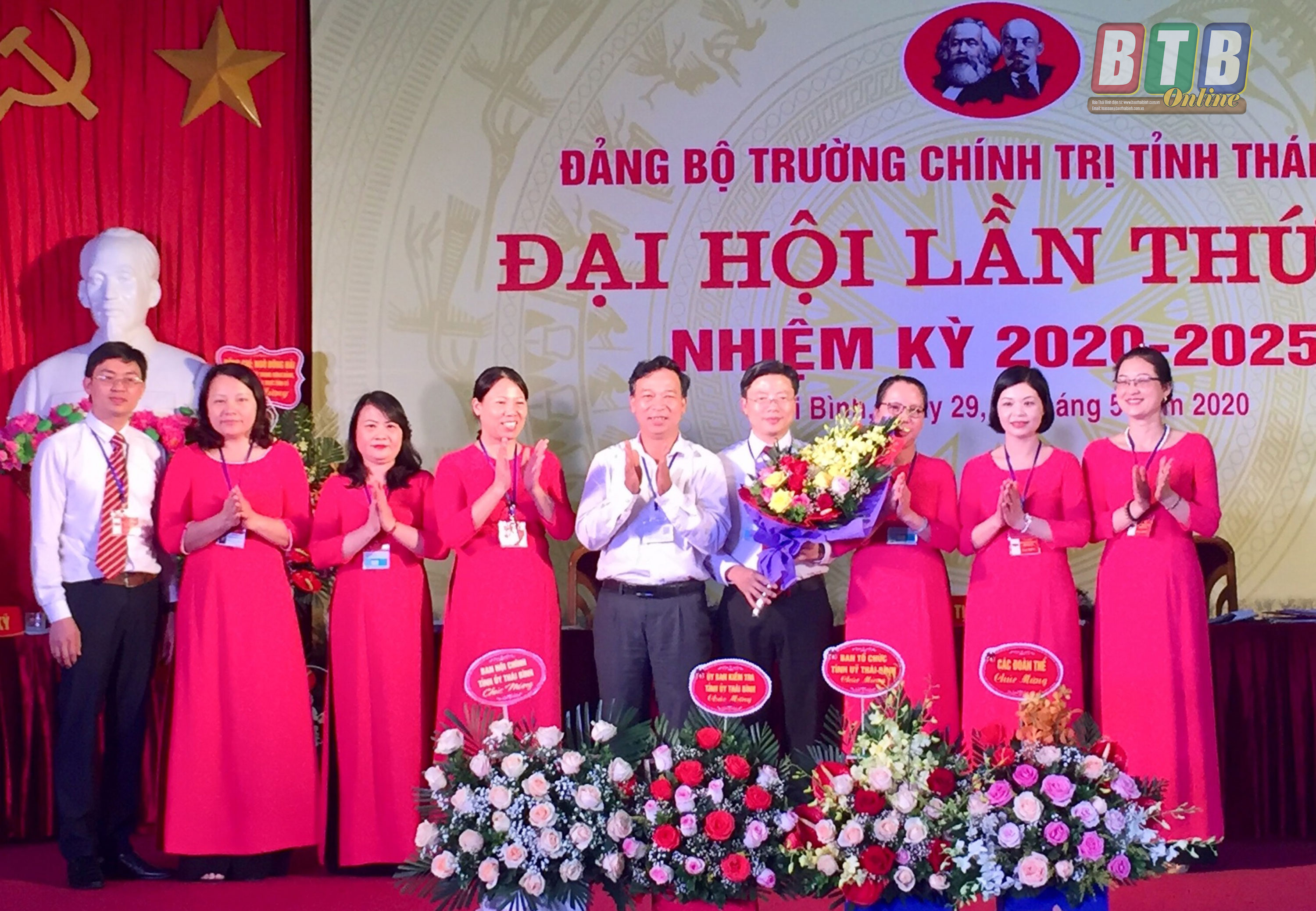 Lãnh đạo Đảng uỷ Khối các cơ quan tỉnh tặng hoa chúc mừng Ban Chấp hành Đảng bộ Trường Chính trị tỉnh nhiệm kỳ 2020 - 2025.