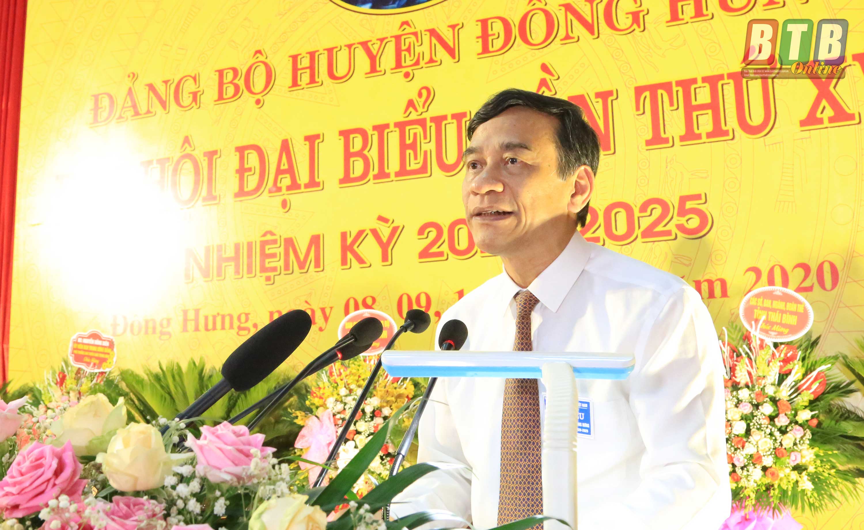 Phát biểu tại Đại hội, đồng chí Đặng Trọng Thăng, Phó Bí thư Tỉnh ủy, Chủ tịch UBND tỉnh ghi nhận, chúc mừng và nhiệt liệt biểu dương những thành tích Đảng bộ và nhân dân huyện Đông Hưng đã đạt được trong nhiệm kỳ qua. Đồng chí Phó Bí thư Tỉnh uỷ, Chủ tịch UBND tỉnh gợi mở một số nội dung để Đại hội nghiên cứu, thảo luận, quyết định. Trong đó nhấn mạnh: Đông Hưng cần tiếp tục quán triệt sâu sắc các quan điểm, chủ trương của Đảng, chính sách, pháp luật của Nhà nước, chủ trương, chính sách của tỉnh vận dụng sáng tạo, phù hợp với thực tiễn của huyện. Xác định thế mạnh, lợi thế của huyện là sản xuất nông nghiệp, vị trí địa lý, nguồn nhân lực có chất lượng, truyền thống văn hóa, đoàn kết thống nhất làm nhân tố quyết định sự phát triển vượt bậc của huyện trong thời gian tới. Bên cạnh đó, huyện tập trung đẩy mạnh công nghiệp hóa, hiện đại hóa, phát triển nhanh, bền vững. Phát triển toàn diện các lĩnh vực văn hóa, xã hội, nâng cao chất lượng giáo dục, đào tạo, y tế, văn hóa, thể thao, thông tin, truyền thông. Tiếp tục chỉ đạo, thực hiện quyết liệt, đồng bộ các biện pháp bảo đảm quốc phòng, giữ vững an ninh chính trị, trật tự an toàn xã hội. Giữ vững và phát huy sự đoàn kết, thống nhất, xây dựng Đảng bộ và hệ thống chính trị trong sạch, vững mạnh. Nâng cao hiệu lực, hiệu quả quản lý, điều hành và chất lượng hoạt động của bộ máy chính quyền địa phương, nâng cao chất lượng hoạt động của bộ máy chính quyền địa phương…