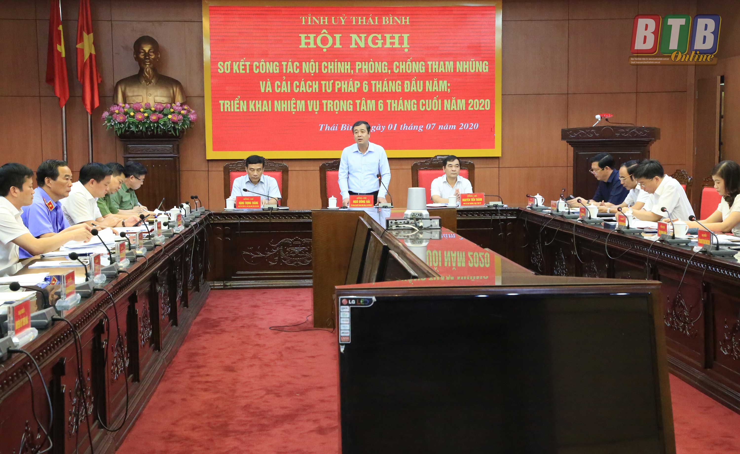 Phát biểu tại hội nghị, đồng chí Ngô Đông Hải, Ủy viên dự khuyết Trung ương Đảng, Bí thư Tỉnh ủy đánh giá cao kết quả đã đạt được trong công tác nội chính, phòng, chống tham nhũng và cải cách tư pháp 6 tháng đầu năm 2020 đồng thời chỉ rõ một số hạn chế cần khắc phục, đặc biệt trên địa bàn đã xảy ra một số vụ việc về an ninh trật tự mà dư luận quan tâm. Để thực hiện tốt các nhiệm vụ trong 6 tháng cuối năm 2020, đồng chí Bí thư Tỉnh ủy đề nghị các cấp, ngành, địa phương tiếp tục chỉ đạo thực hiện tốt các chỉ thị, nghị quyết, văn bản chỉ đạo của trung ương và của tỉnh về công tác nội chính và phòng, chống tham nhũng, đồng thời phải cụ thể hóa quy định của cấp trên sát với tình hình của từng đơn vị, địa phương. Nâng cao trách nhiệm điều hành của cấp ủy các cấp, đánh giá đúng tình hình, bám chắc các quy định của pháp luật để chỉ đạo giải quyết kịp thời các vụ việc phát sinh, không để tồn đọng, kéo dài, gây bức xúc trong nhân dân. Tập trung làm tốt công tác tiếp dân, giải quyết khiếu nại, tố cáo đúng quy định. Các ngành trong khối nội chính chủ động triển khai các nhiệm vụ trọng tâm, tập trung khắc phục những tồn tại, hạn chế; chú trọng nâng cao phẩm chất chính trị, đạo đức cho cán bộ, đảng viên. Tăng cường công tác thanh tra, kiểm tra, giám sát, có cơ chế kiểm soát, nhất là đối với những địa điểm, lĩnh vực, vị trí công tác dễ phát sinh tiêu cực, tham nhũng, kịp thời phát hiện, xử lý nghiêm, không để xảy ra tình trạng tiêu cực, vi phạm. Tập trung nâng cao chất lượng công tác tiếp dân, điều tra, truy tố, xét xử và thi hành án, kiên quyết không để các vụ việc tồn đọng, kéo dài. Chủ động nắm chắc tình hình, phát hiện, ngăn chặn, vô hiệu hóa hoạt động chống phá của các thế lực thù địch, bảo đảm an ninh chính trị nội bộ, an ninh văn hóa tư tưởng, an ninh kinh tế, phòng ngừa các loại tội phạm lợi dụng không gian mạng để hoạt động chống phá; đánh mạnh vào tội phạm hình sự, ma túy, tín dụng đen...