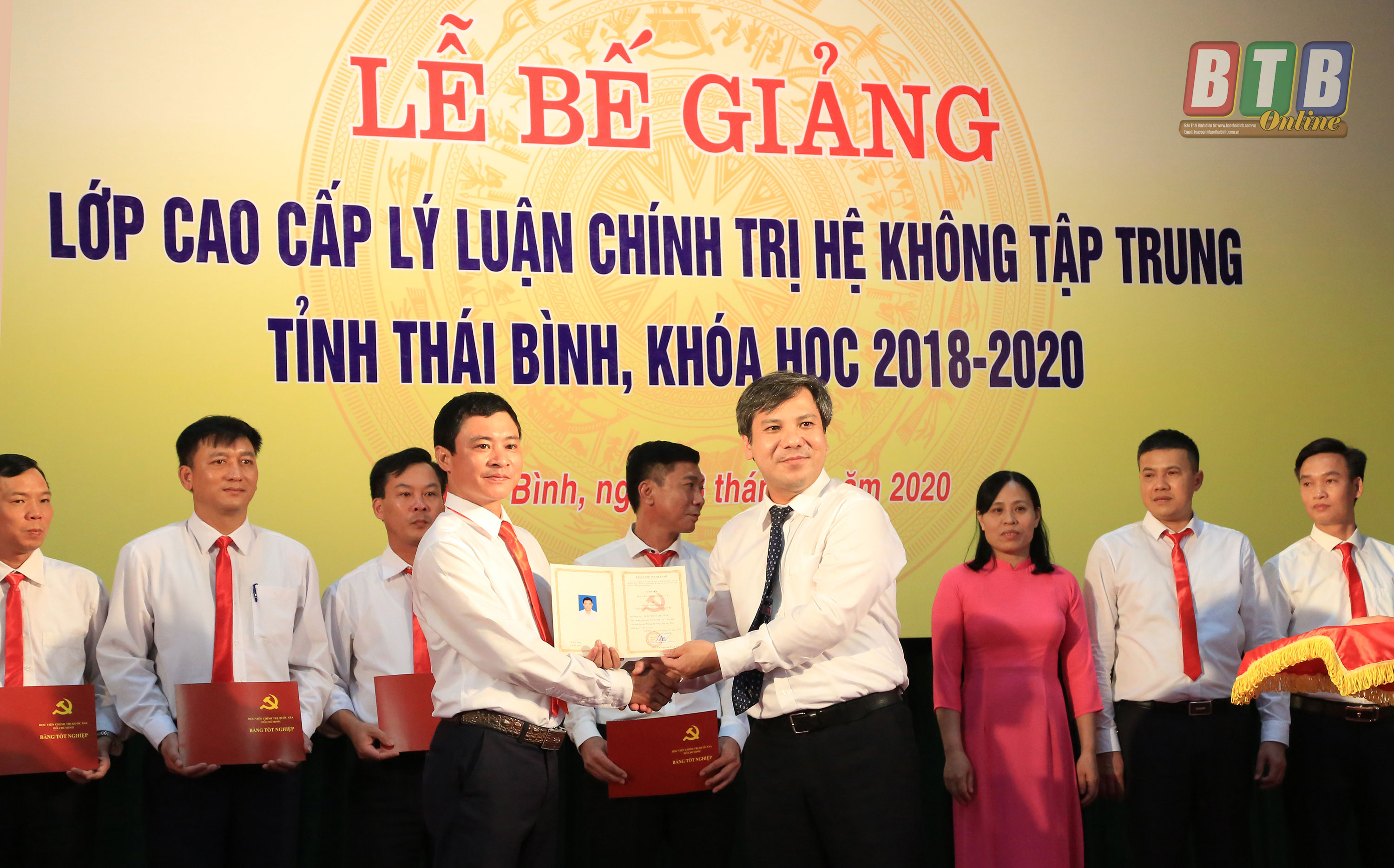 Lớp cao cấp lý luận chính trị hệ không tập trung tại Thái Bình khóa 2018-2020 khai giảng ngày 8/8/2018 tại Trường Chính trị tỉnh. Sau hai năm học tập, các học viên đã được trang bị khối lượng kiến thức đa dạng, phong phú và có hệ thống, giúp các học viên nhận thức rõ hơn những nguyên lý cơ bản của Chủ nghĩa Mác - Lênin, tư tưởng Hồ Chí Minh, quan điểm của Đảng và chính sách, pháp luật của Nhà nước, từ đó có được phương pháp xem xét, giải quyết các vấn đề thực tiễn một cách khoa học hơn. Kết thúc khóa học đã có 88/90 đồng chí được Học viện Chính trị Quốc gia Hồ Chí Minh cấp bằng tốt nghiệp, trong đó có 9 học viên xếp loại giỏi, 78 học viên xếp loại khá, 1 học viên xếp loại trung bình.