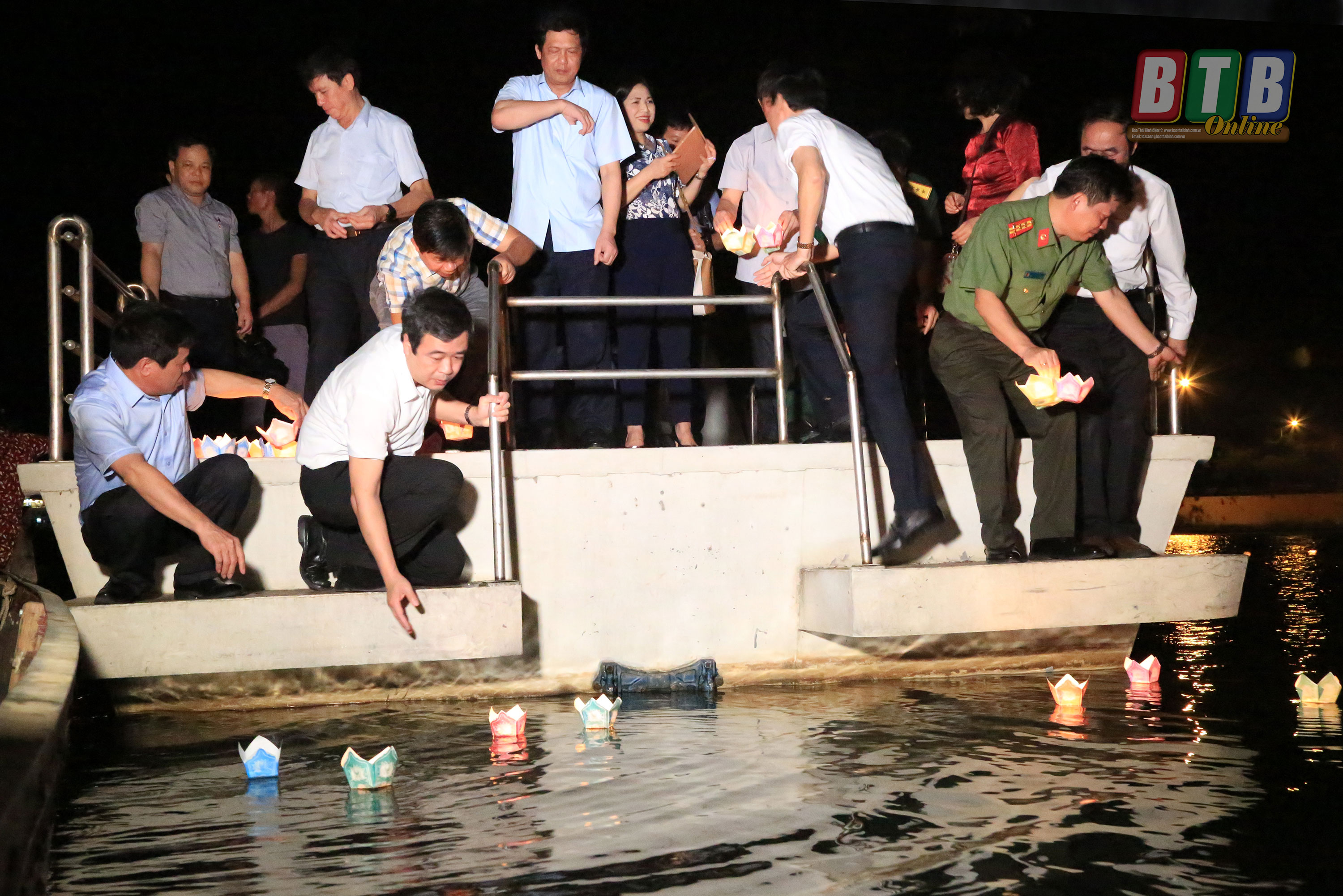 Đoàn đại biểu tỉnh Thái Bình thả hoa đăng trên sông Thạch Hãn.