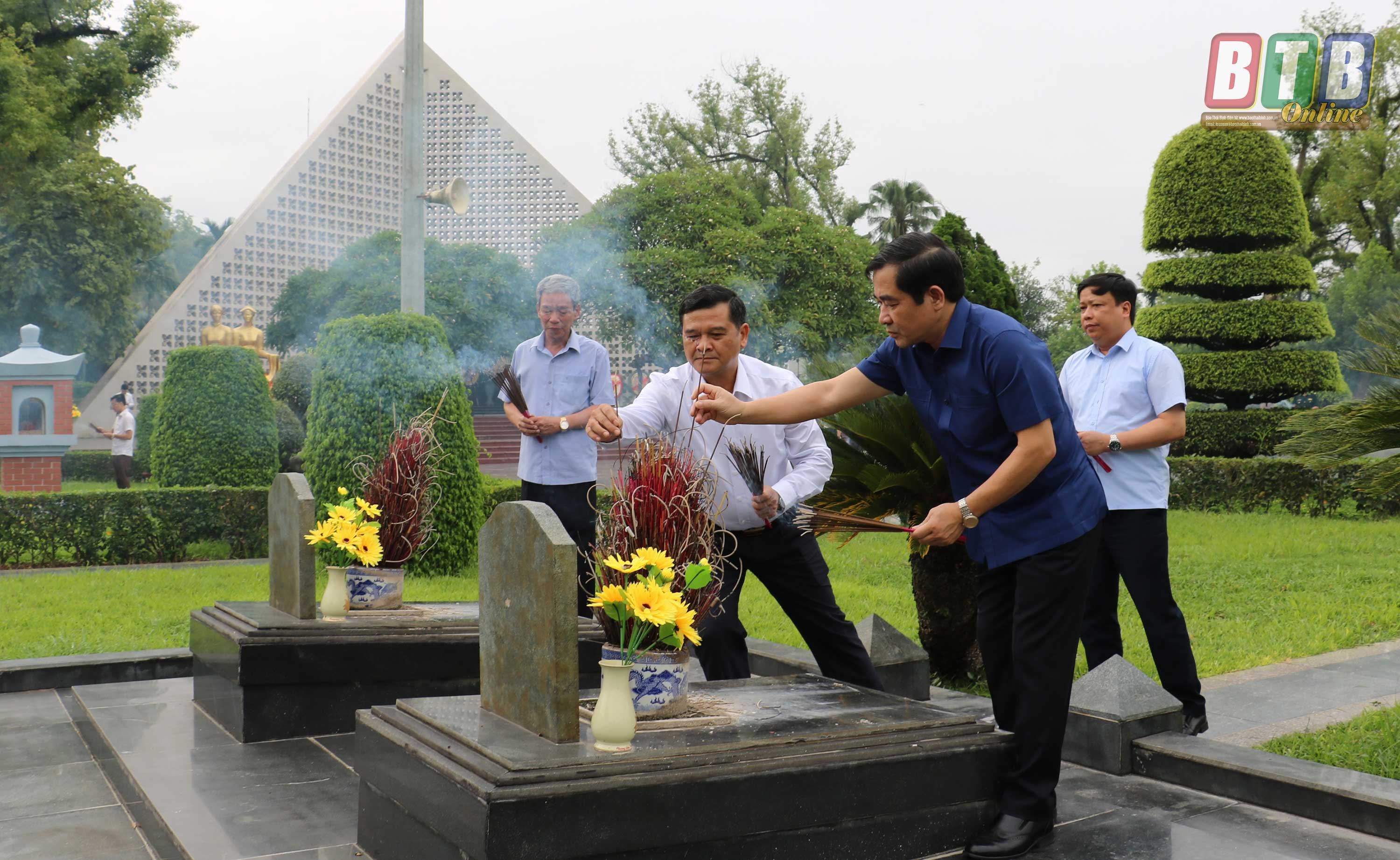 Tại các nghĩa trang liệt sĩ, thay mặt Tỉnh ủy, HĐND, UBND tỉnh, Ủy ban MTTQ tỉnh, đồng chí Nguyễn Tiến Thành, Phó Bí thư thường trực Tỉnh ủy cùng các đại biểu đã kính cẩn dâng hoa, dâng hương tại Đài tưởng niệm và các phần mộ liệt sĩ, bày tỏ lòng thành kính, tri ân các anh hùng liệt sĩ đã anh dũng hy sinh vì nền độc lập, tự do của dân tộc, vì hạnh phúc của nhân dân.