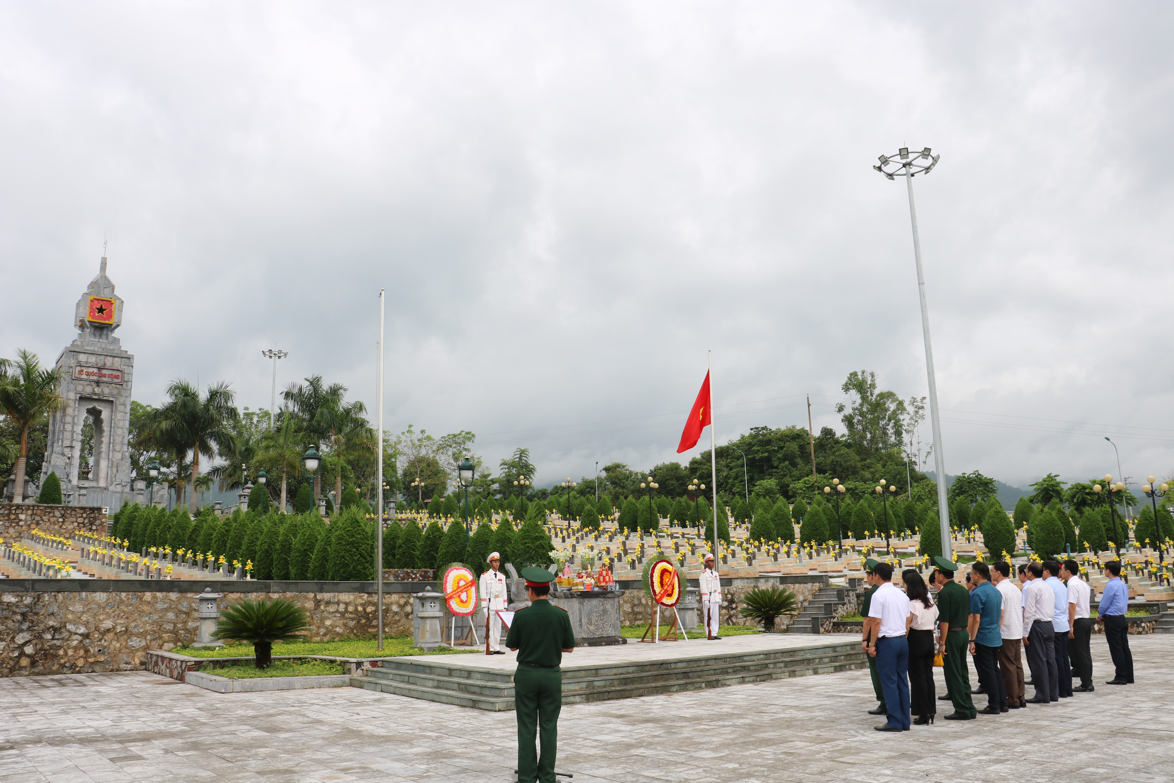 Đoàn đại biểu tỉnh Thái Bình dâng hương tưởng niệm các anh hùng liệt sĩ tại Nghĩa trang Liệt sĩ Tông Khao, tỉnh Điện Biên