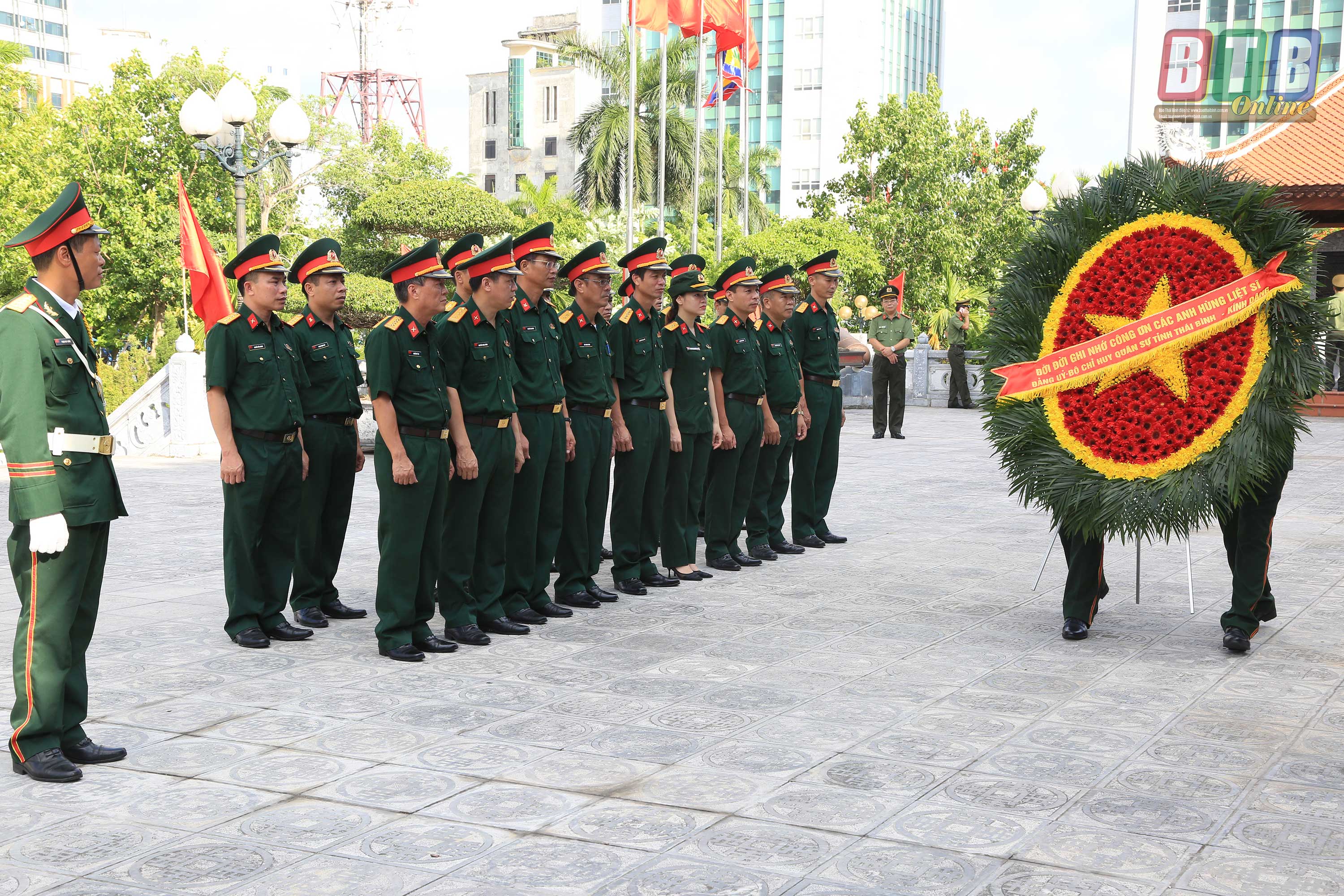 Đoàn đại biểu đã thành kính dâng hoa, thắp hương tri ân công lao to lớn của các anh hùng liệt sĩ đã cống hiến, hy sinh vì nền độc lập, tự do cho Tổ quốc. Trước anh linh của các anh hùng liệt sĩ quê hương Thái Bình, cán bộ, chiến sĩ lực lượng vũ trang tỉnh nguyện ra sức thi đua, quyết tâm thực hiện thắng lợi nhiệm vụ quân sự, quốc phòng địa phương và các nhiệm vụ chính trị được giao, giữ vững an ninh chính trị, trật tự an toàn xã hội, góp phần xây dựng tỉnh Thái Bình ngày càng phát triển.