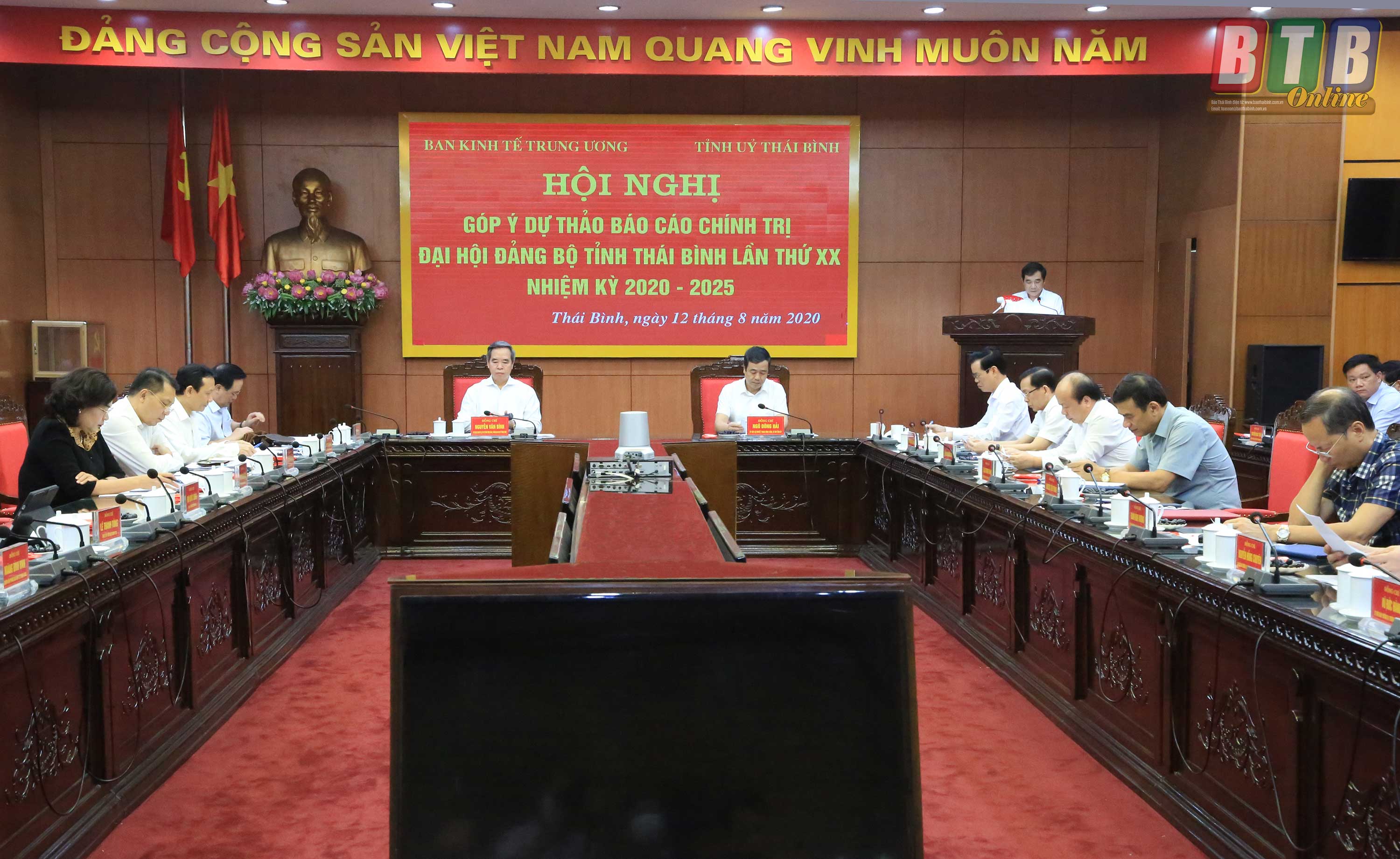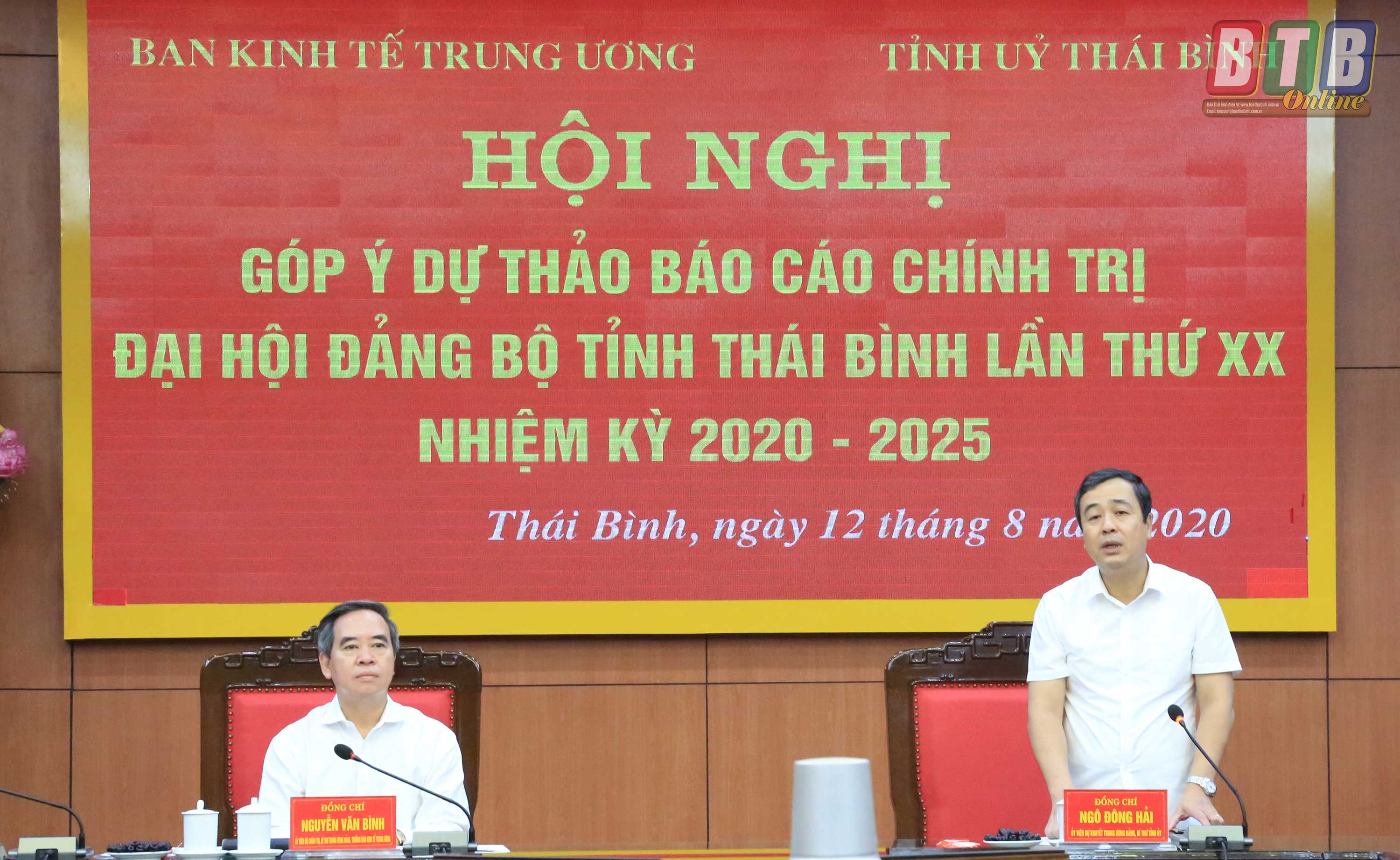 Phát biểu tại buổi làm việc, đồng chí Nguyễn Văn Bình, Ủy viên Bộ Chính trị, Bí thư Trung ương Đảng, Trưởng ban Kinh tế Trung ương đánh giá cao những thành tựu mà Thái Bình đã đạt được trong những năm qua, nhất là trong phát triển kinh tế - xã hội, xây dựng nông thôn mới. Tuy nhiên, dự thảo Báo cáo chính trị của tỉnh cần phân tích, đánh giá sâu sắc hơn nữa tác động của đại dịch Covid-19 đến việc thực hiện các nhiệm vụ chính trị, xác định đúng vị trí của Thái Bình trong mối quan hệ với các tỉnh trong khu vực và cả nước để hoạch định rõ đường hướng, chiến lược phát triển của tỉnh trong những năm tới.