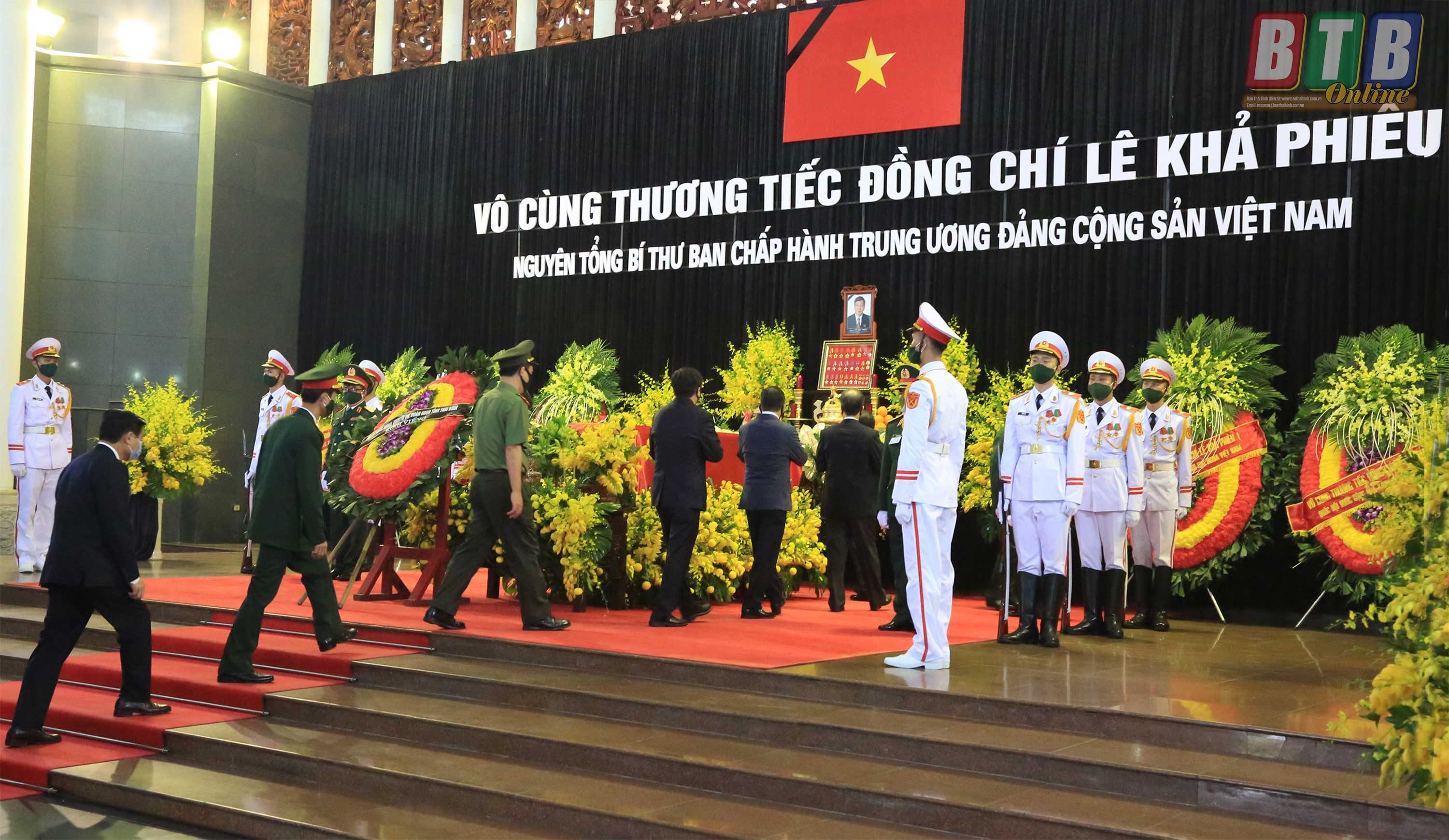 Thay mặt Đoàn đại biểu tỉnh Thái Bình, đồng chí Ngô Đông Hải, Ủy viên dự khuyết Trung ương Đảng, Bí thư Tỉnh ủy đã kính cẩn thắp hương, đặt vòng hoa, cùng Đoàn vào viếng và bày tỏ niềm tiếc thương vô hạn và lòng tri ân sâu sắc công lao to lớn của nguyên Tổng Bí thư Lê Khả Phiêu - người cộng sản kiên trung, mẫu mực, hết lòng vì nước, vì dân; nhà lãnh đạo xuất sắc đã có nhiều đóng góp to lớn đối với sự nghiệp cách mạng vẻ vang của Đảng và dân tộc. Vòng hoa của Đoàn đại biểu tỉnh Thái Bình mang dòng chữ: “Tỉnh ủy, HĐND, UBND tỉnh, Ủy ban MTTQ tỉnh, Đoàn đại biểu Quốc hội tỉnh Thái Bình kính viếng”. Đồng chí Bí thư Tỉnh ủy cùng các đại biểu trong Đoàn đã đến chia buồn với gia đình nguyên Tổng Bí thư Lê Khả Phiêu.