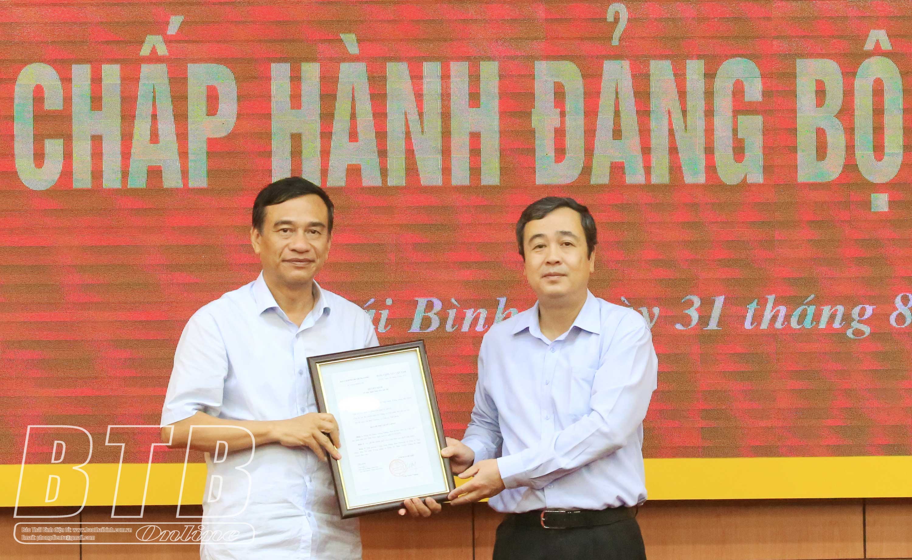 Đồng chí Ngô Đông Hải, Ủy viên dự khuyết Trung ương Đảng, Bí thư Tỉnh ủy trao quyết định cho đồng chí Đặng Trọng Thăng.