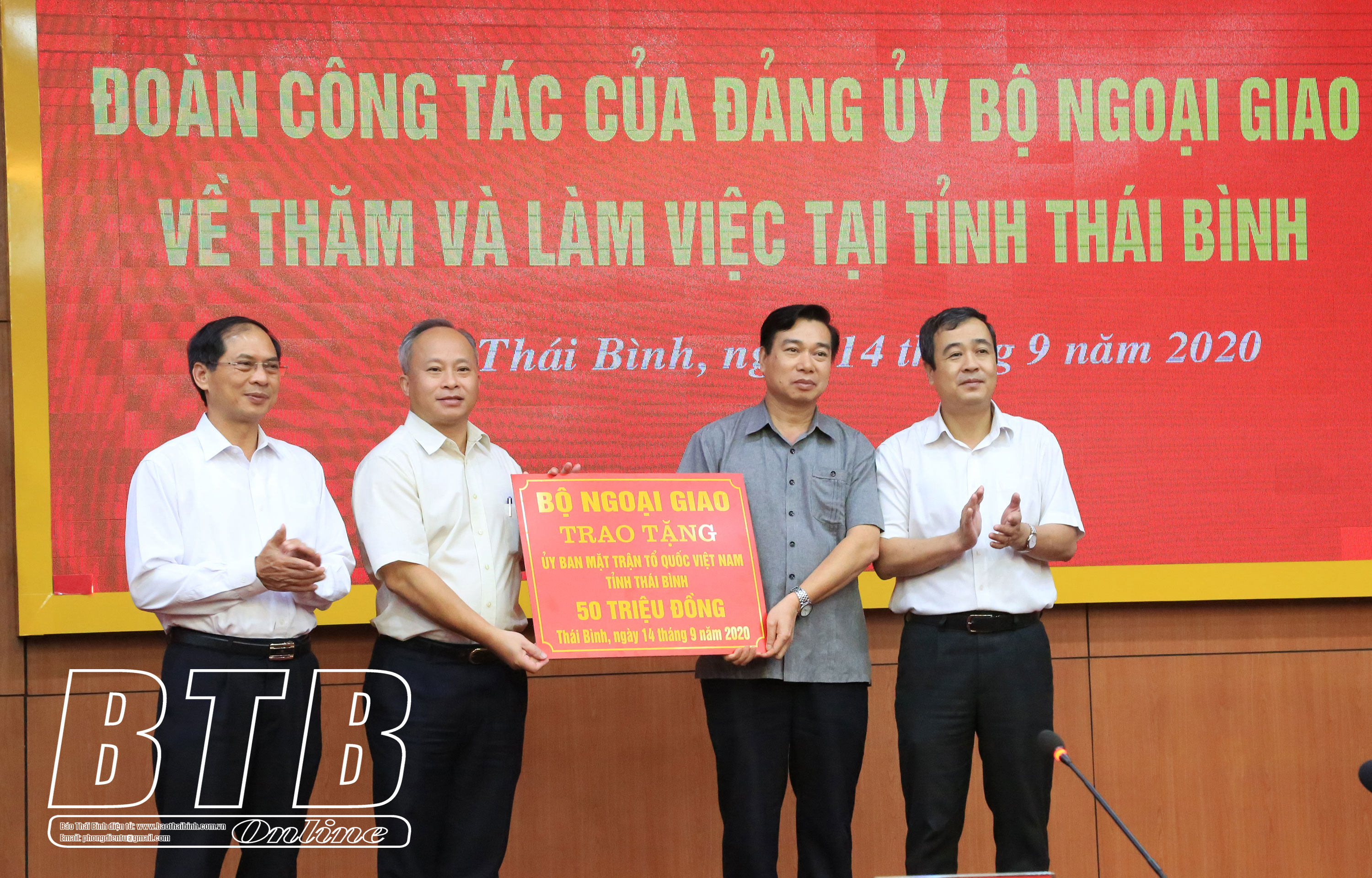 Nhân dịp này, Bộ Ngoại giao trao cho Ủy ban MTTQ tỉnh 50 triệu đồng để tặng các gia đình chính sách, gia đình có công với cách mạng trên địa bàn tỉnh.