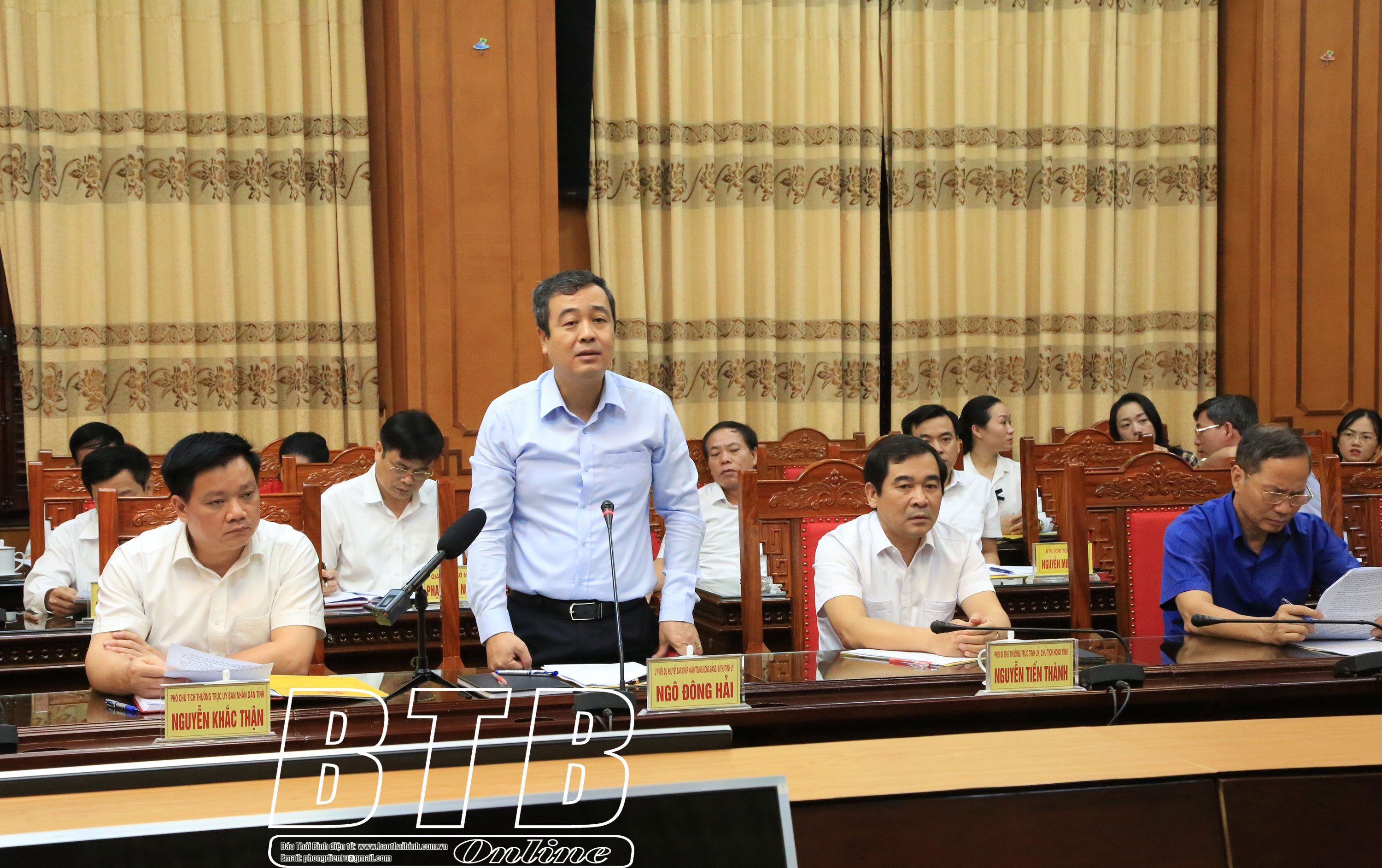 Phát biểu tại buổi làm việc, đồng chí Ngô Đông Hải, Ủy viên dự khuyết Trung ương Đảng, Bí thư Tỉnh ủy cho biết, tỉnh Thái Bình đang lập nhiều thành tích thi đua chào mừng Đại hội Đảng bộ tỉnh lần thứ XX. Trên cơ sở đánh giá bước đầu cho thấy, mặc dù trải qua nhiều khó khăn nhưng tỉnh Thái Bình đã có 1 nhiệm kỳ thành công, đã đạt và vượt hầu hết các chỉ tiêu đề ra trong Nghị quyết Đại hội Đảng bộ tỉnh lần thứ XIX. Tỉnh Thái Bình đã có bước tăng trưởng căn bản và toàn diện trên tất cả các lĩnh vực, kinh tế - xã hội có bước tiến mới.