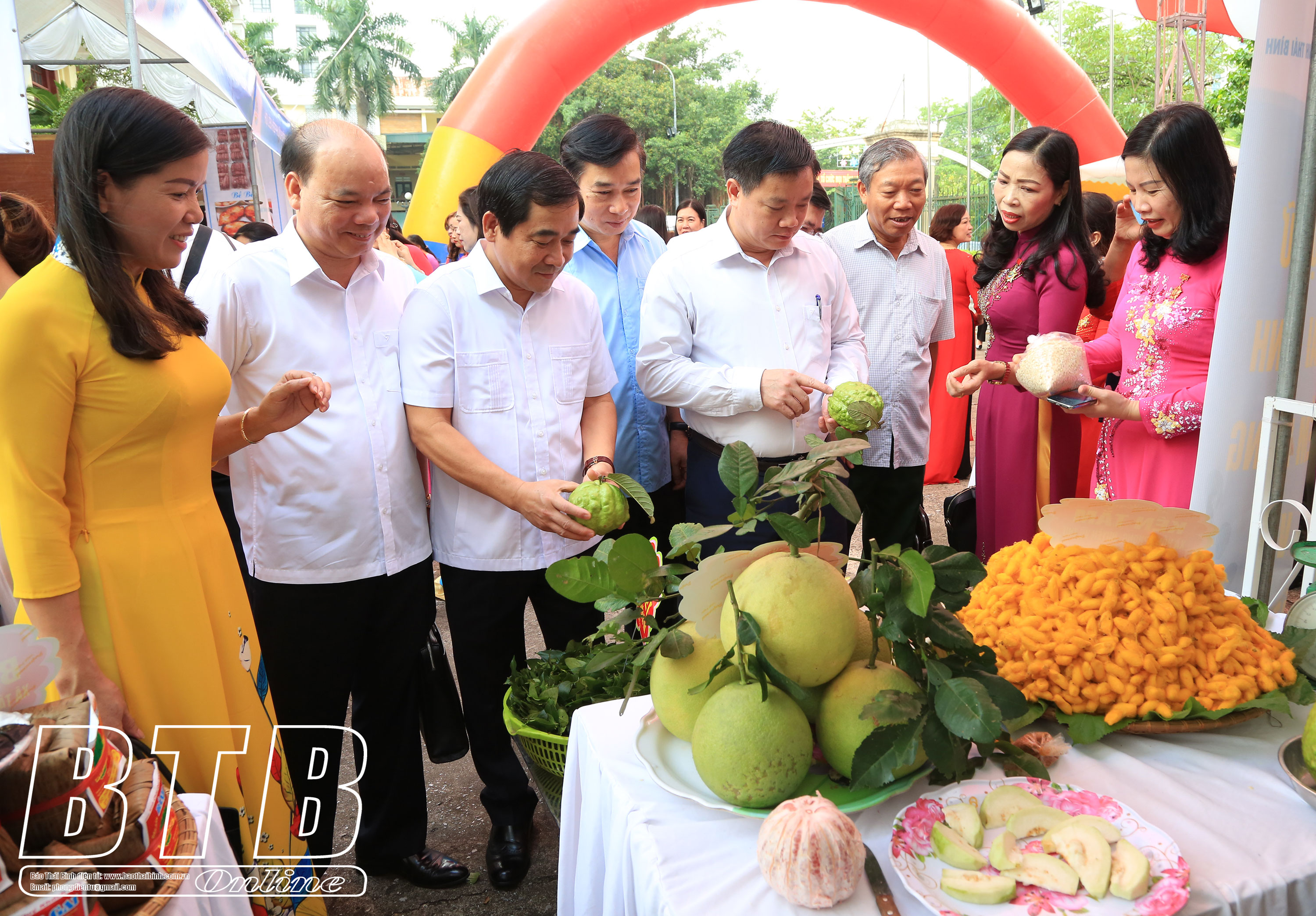 Các đồng chí lãnh đạo tỉnh và đại biểu thăm các gian hàng trưng bày sản phẩm tiêu biểu.