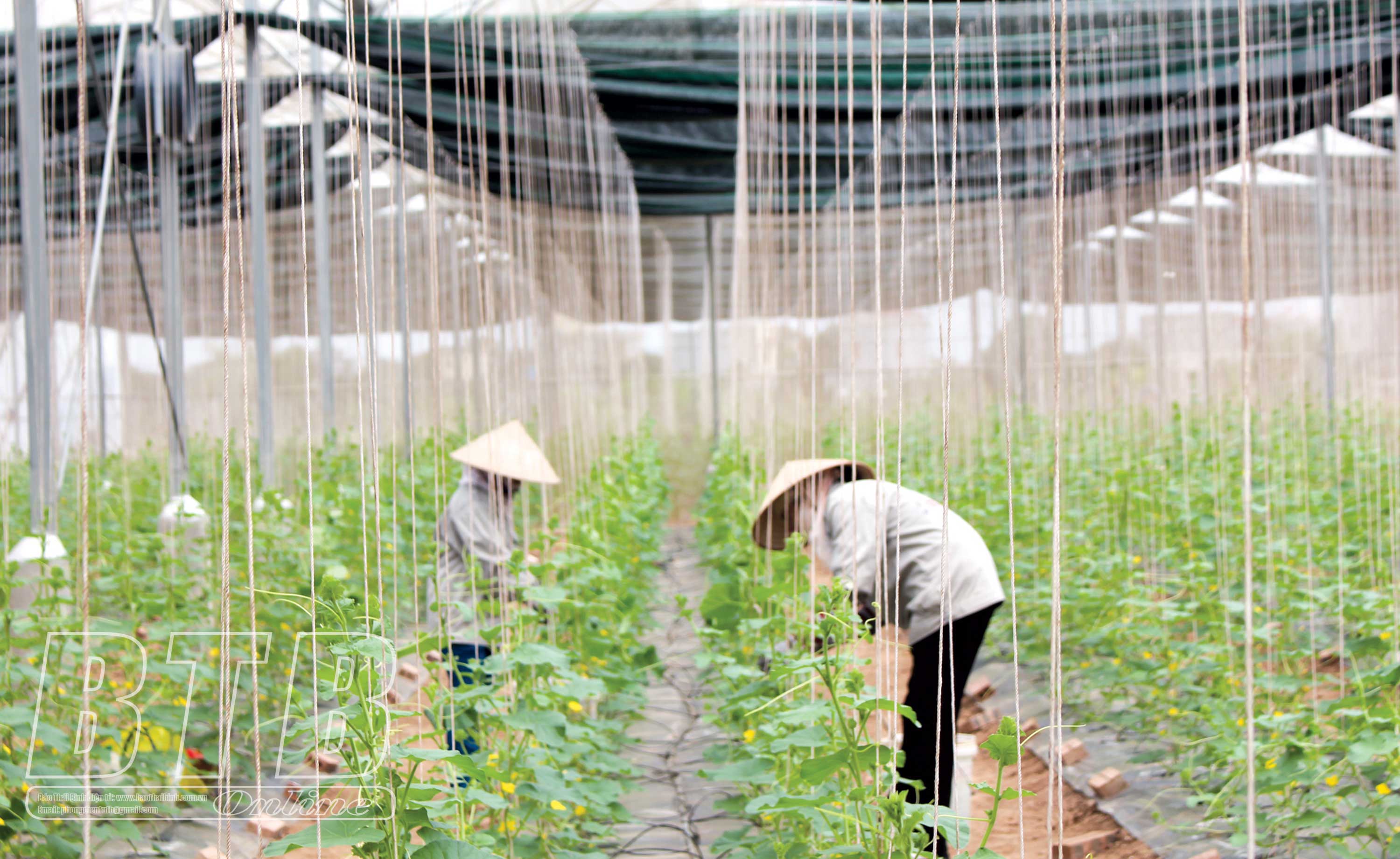 Trồng dưa trong nhà lưới tại Công ty Cổ phần Thương mại tổng hợp Toan Vân.