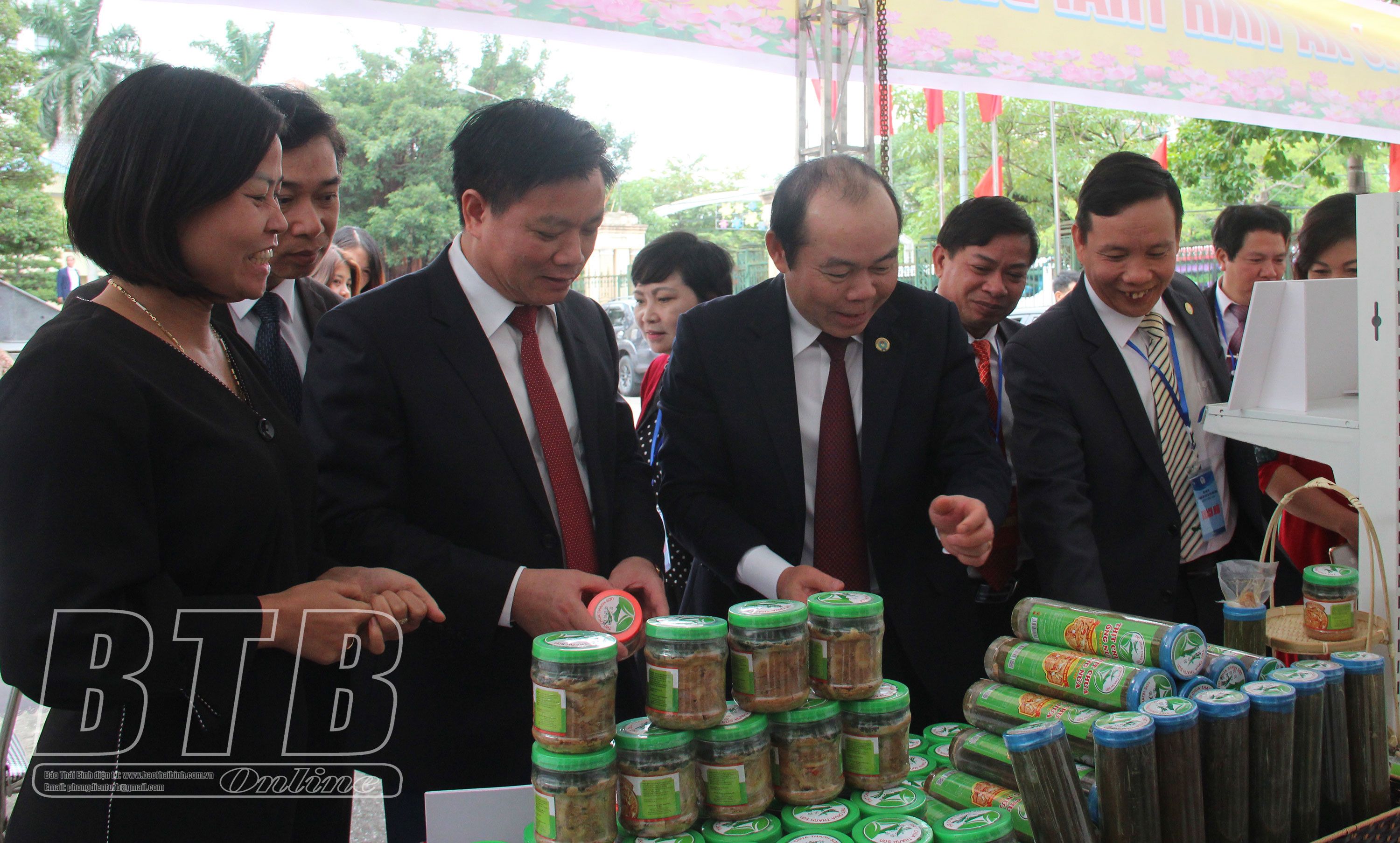 Các đại biểu dự đại hội tham quan gian hàng trưng bày sản phẩm tại đại hội.