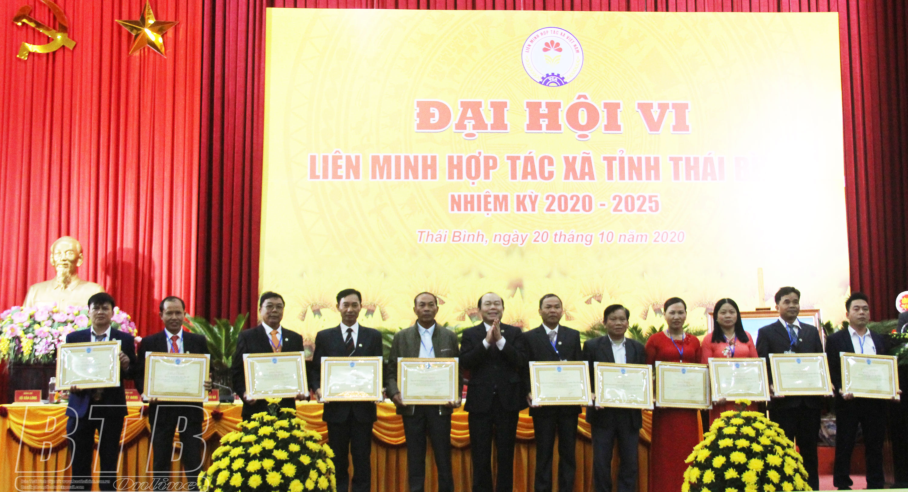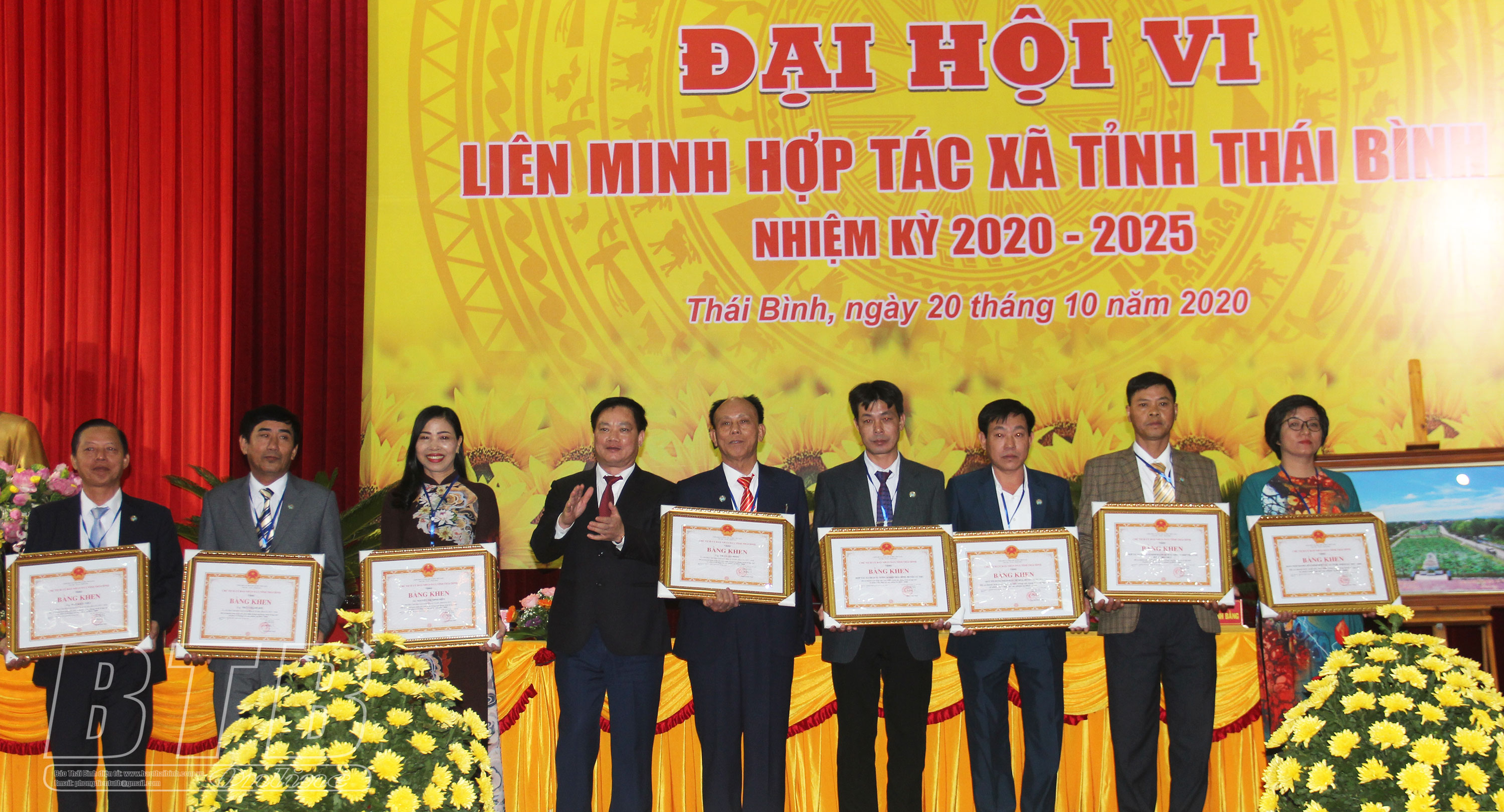 Tại Đại hội, UBND tỉnh tặng bằng khen cho 4 tập thể, 4 cá nhân có thành tích xuất sắc; Liên minh HTX Việt Nam đã tặng bằng khen cho 11 tập thể, 11 cá nhân có thành tích xuất sắc trong phát triển KTTT, HTX giai đoạn 2015 – 2020.