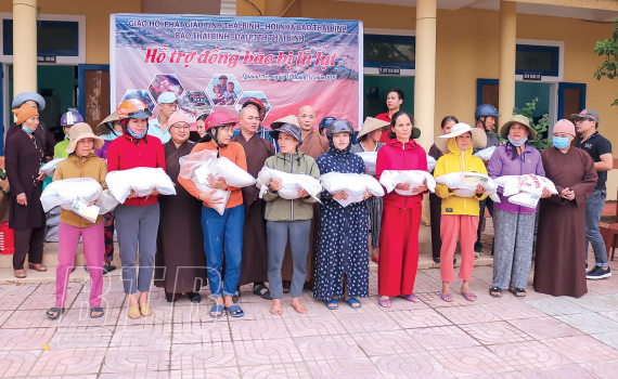 Đại đức Thích Thanh Mẫn, Trưởng ban từ thiện Giáo hội Phật giáo tỉnh tâm sự: Để kịp thời hỗ trợ, chia sẻ với người dân miền Trung, đặc biệt là các em học sinh trong thời điểm gia đình đang trong cảnh màn trời chiếu đất, chúng tôi đã phát động tăng ni, Phật tử, mạnh thường quân đóng góp cùng chư tăng tỉnh Thái Bình giúp đỡ, hỗ trợ đồng bào miền Trung với mong muốn người dân ở đây sớm vượt qua khó khăn. Chỉ trong một thời gian ngắn, rất nhiều nhu yếu phẩm được vận chuyển đến các tỉnh miền Trung. Thời gian tới, Ban từ thiện Giáo hội Phật giáo tỉnh tiếp tục kêu gọi các tổ chức, cá nhân hướng về đồng bào miền Trung.