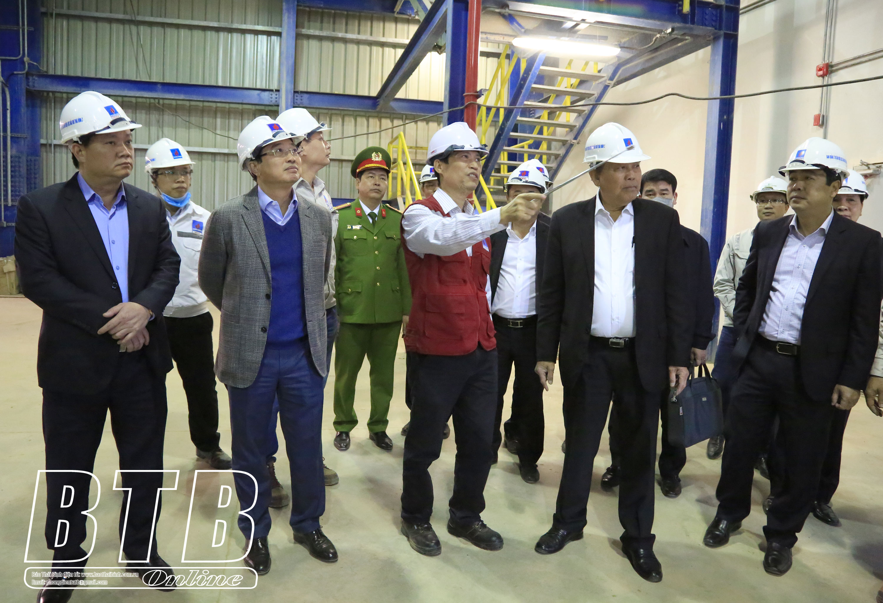 Đồng chí Phó Thủ tướng thường trực Chính phủ Trương Hòa Bình cùng các đồng chí lãnh đạo tỉnh kiểm tra tiến độ thực hiện dự án Nhà máy nhiệt điện Thái Bình 2.