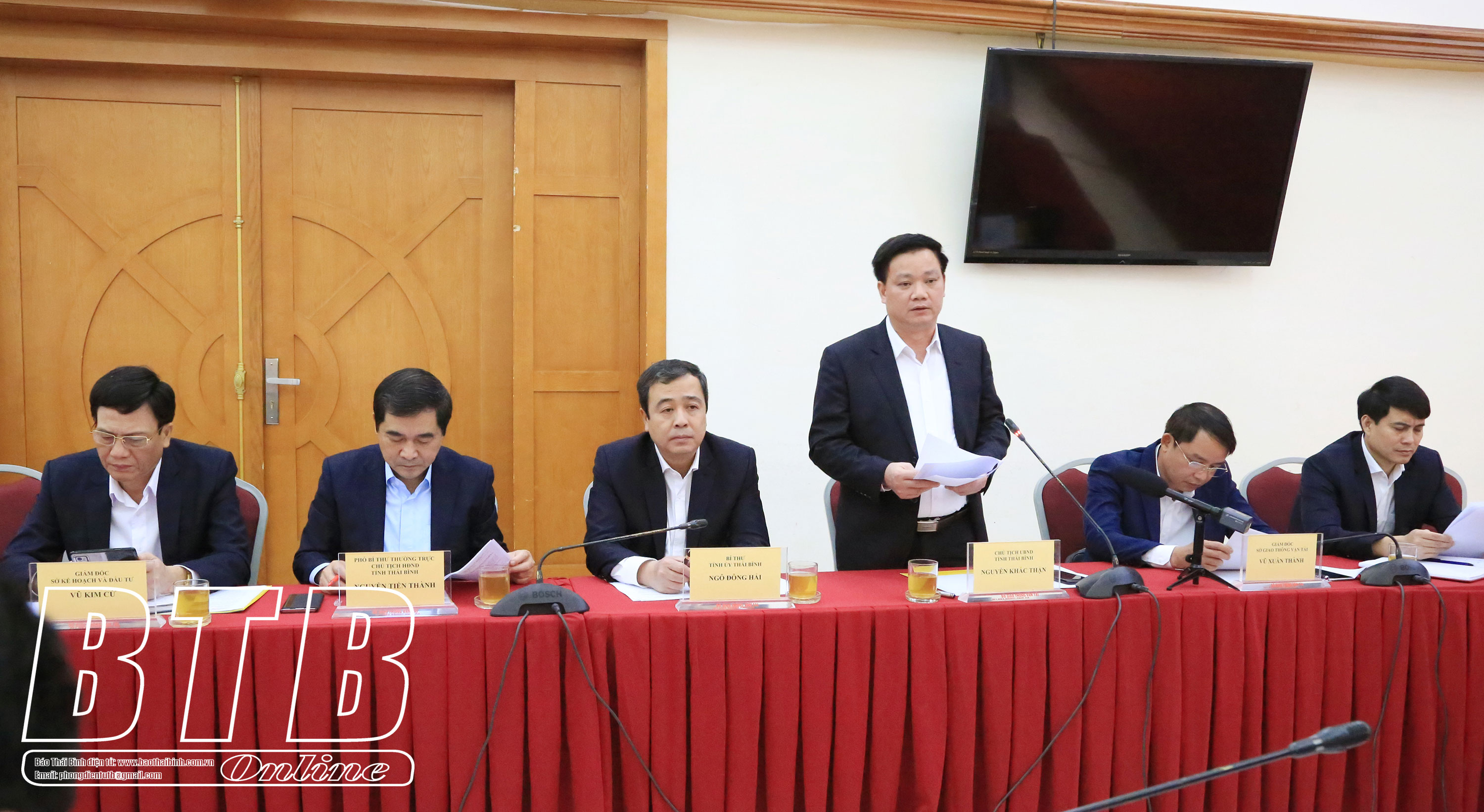 Đồng chí Ngô Đông Hải, Ủy viên dự khuyết Ban Chấp hành Trung ương Đảng, Bí thư Tỉnh ủy trân trọng cảm ơn Bộ GTVT đã tạo điều kiện bố trí buổi làm việc với tỉnh; đồng thời khẳng định kết cấu hạ tầng giao thông có vai trò rất quan trọng đối với sự phát triển của tỉnh. Chính vì thế, đồng chí Bí thư Tỉnh ủy mong muốn Bộ GTVT tiếp tục quan tâm, hỗ trợ, tạo điều kiện và phối hợp với tỉnh trong triển khai thực hiện các dự án giao thông trọng điểm. Đặc biệt là những dự án giao thông giúp thu hút đầu tư vào các khu cụm công nghiệp và Khu kinh tế Thái Bình.