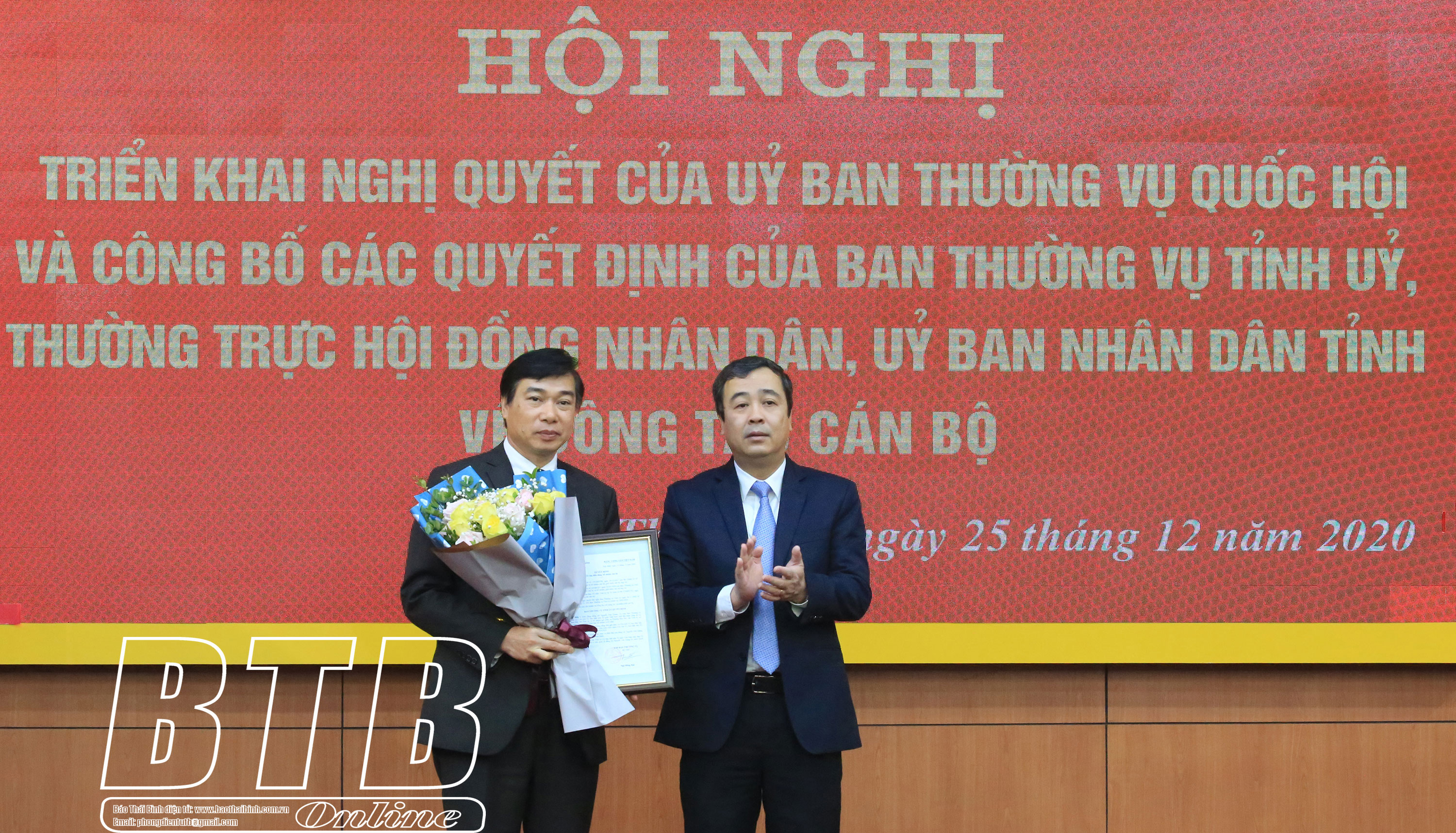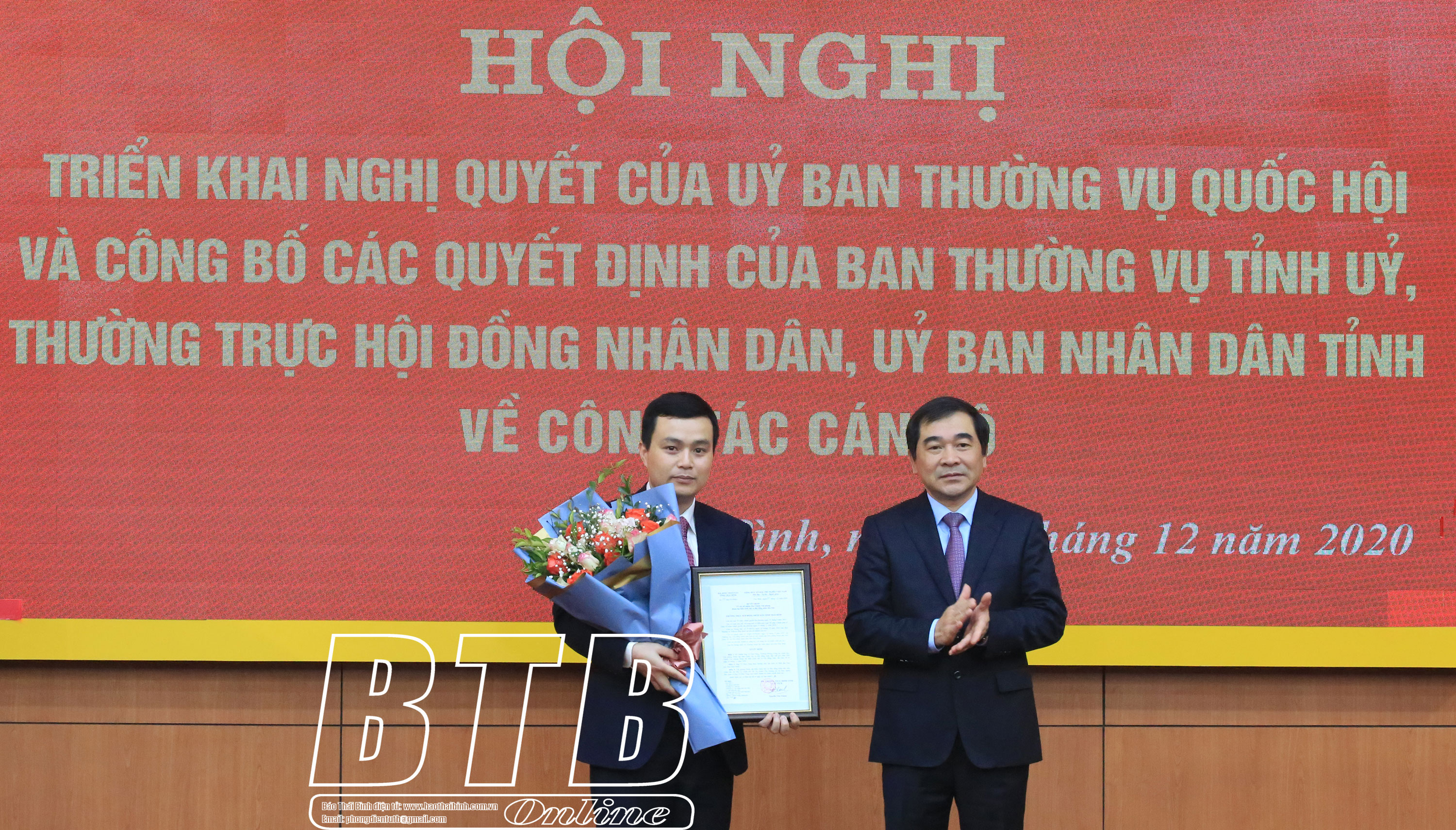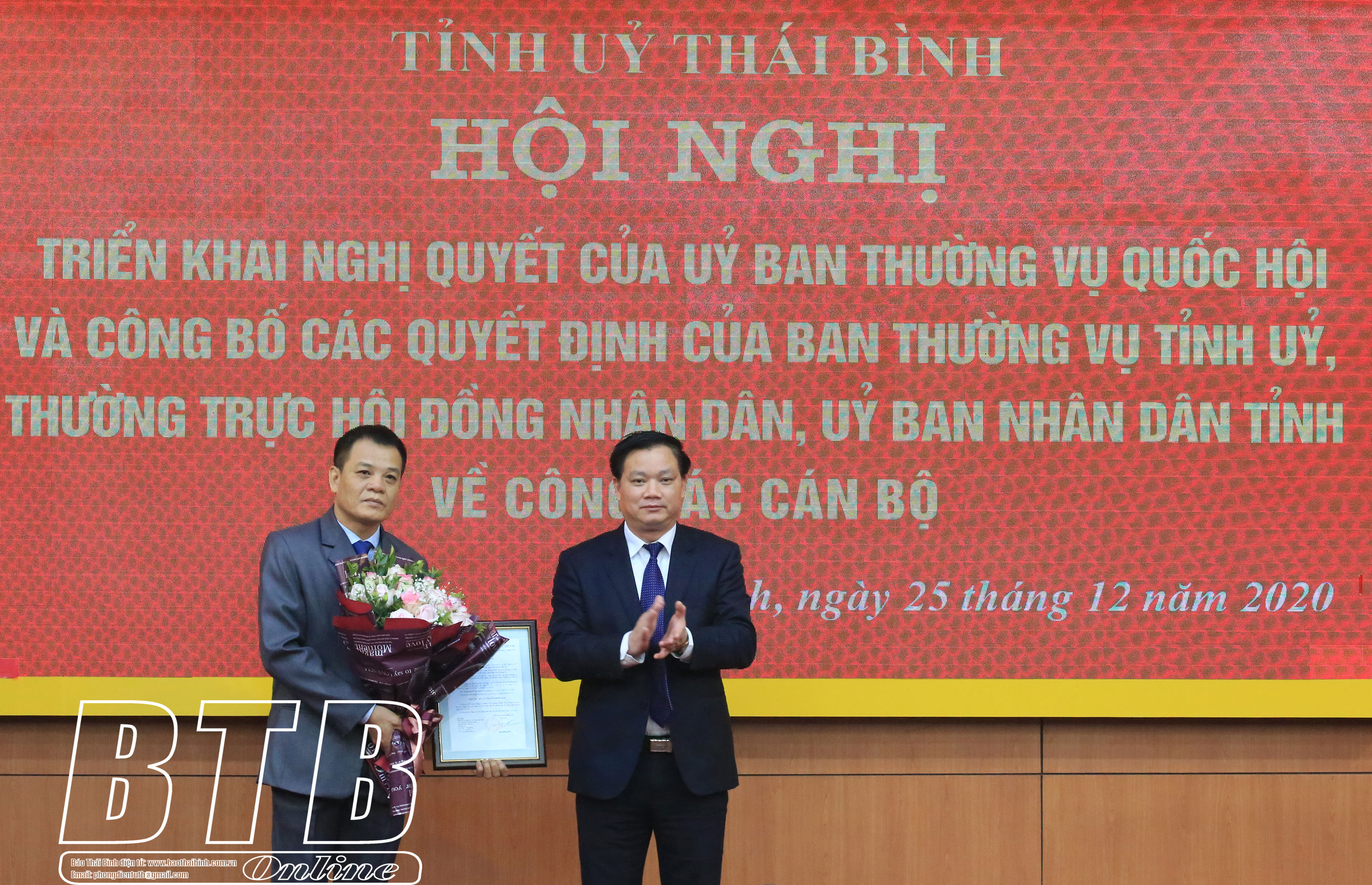 Tại hội nghị, lãnh đạo Ban Tổ chức Tỉnh ủy, lãnh đạo Sở Nội vụ và Chánh Văn phòng Đoàn đại biểu Quốc hội và HĐND tỉnh đã công bố Nghị quyết của Ủy ban Thường vụ Quốc hội về phê chuẩn kết quả bầu Phó Chủ tịch HĐND tỉnh Thái Bình nhiệm kỳ 2016 - 2021 và các quyết định của Ban Thường vụ Tỉnh ủy, Thường trực HĐND, UBND tỉnh về công tác cán bộ. Theo đó, đồng chí Đặng Thanh Giang, Ủy viên Ban Thường vụ, Trưởng ban Dân vận Tỉnh ủy được điều động đến nhận công tác tại HĐND tỉnh để giữ chức Phó Chủ tịch thường trực HĐND tỉnh. Đồng chí Nguyễn Văn Giang, Ủy viên Ban Thường vụ Tỉnh ủy, Chủ tịch Ủy ban MTTQ tỉnh được điều động đến nhận công tác tại Ban Dân vận Tỉnh ủy và bổ nhiệm giữ chức vụ Trưởng ban Dân vận Tỉnh ủy, đồng chí Nguyễn Văn Giang đồng thời giữ chức vụ Chủ tịch Ủy ban MTTQ tỉnh đến khi kiện toàn chức danh Chủ tịch Ủy ban MTTQ tỉnh nhiệm kỳ 2019 - 2024. Đồng chí Phạm Văn Quang, Chánh Văn phòng Sở Khoa học và Công nghệ được bổ nhiệm giữ chức vụ Phó Giám đốc Sở Khoa học và Công nghệ. Đồng chí Vũ Sơn Tùng, Trưởng phòng Công tác Quốc hội, Văn phòng Đoàn đại biểu Quốc hội và HĐND tỉnh được bổ nhiệm giữ chức vụ Phó Chánh Văn phòng Đoàn đại biểu Quốc hội và HĐND tỉnh.