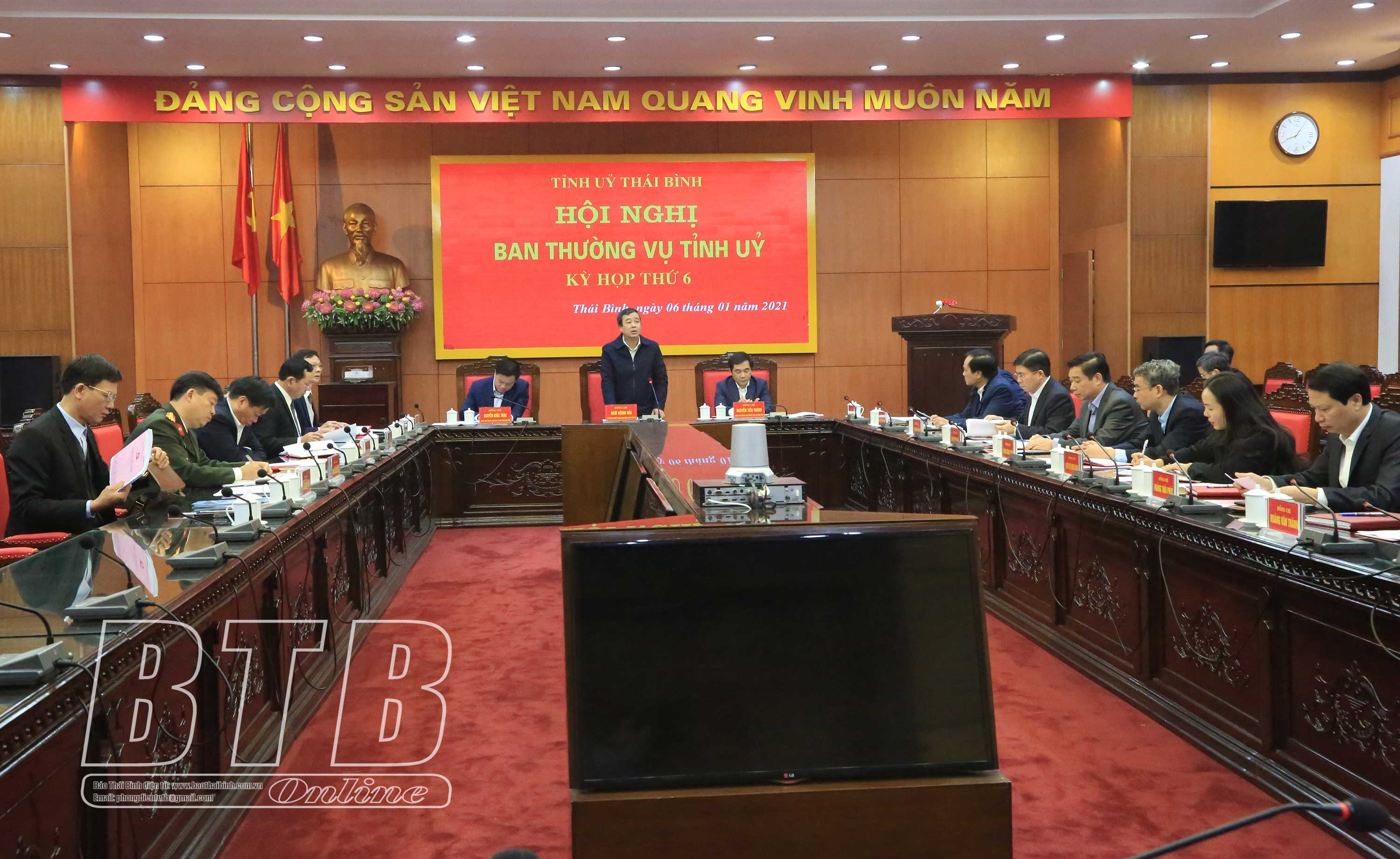 Dự thảo báo cáo kiểm điểm tập thể Ban Thường vụ Tỉnh ủy năm 2020 khẳng định: Trong năm 2020, Ban Thường vụ Tỉnh ủy đã chỉ đạo, tổ chức quán triệt, tuyên truyền, phổ biến, triển khai thực hiện nghiêm túc, đầy đủ, kịp thời các nghị quyết, chỉ thị, kết luận, quy định, quyết định của Ban Chấp hành Trung ương Đảng, Bộ Chính trị, Ban Bí thư; xây dựng chương trình, kế hoạch hành động thực hiện sát hợp với điều kiện của tỉnh; quán triệt nghiêm túc, đầy đủ chính sách, pháp luật của Nhà nước, nhất là các nghị quyết của Quốc hội, quyết định của Chính phủ về phát triển kinh tế - xã hội, tài chính ngân sách, phòng, chống dịch bệnh Covid-19; đề ra các chủ trương đúng đắn lãnh đạo, chỉ đạo toàn diện, có trọng tâm, trọng điểm các nhiệm vụ phát triển kinh tế - xã hội, quốc phòng, an ninh, xây dựng Đảng, chính quyền và hệ thống chính trị năm 2020, đồng thời tập trung chỉ đạo quyết liệt các cấp, các ngành tổ chức thực hiện thắng lợi “mục tiêu kép” vừa phòng, chống hiệu quả dịch Covid-19 vừa thúc đẩy phát triển kinh tế - xã hội. Vì vậy, mặc dù trong bối cảnh có rất nhiều khó khăn, song nền kinh tế của tỉnh vẫn duy trì tăng trưởng dương (3,23%) cao hơn mức bình quân của cả nước và một số tỉnh vùng đồng bằng sông Hồng. Thái Bình là một trong những địa phương có tỷ lệ vốn đầu tư được giải ngân cao nhất cả nước. Thu ngân sách từ nội bộ nền kinh tế của tỉnh vẫn đạt 7.746 tỷ đồng, vượt 11,2% so với dự toán Bộ Tài chính giao. Lĩnh vực văn hóa - xã hội có nhiều tiến bộ, an sinh xã hội được bảo đảm. Các chế độ, chính sách đối với các đối tượng chính sách, hộ nghèo được thực hiện đầy đủ, kịp thời. Công tác cải cách hành chính và xây dựng chính quyền tiếp tục được đẩy mạnh. Công tác tiếp dân, giải quyết đơn thư khiếu nại, tố cáo của công dân được chú trọng. An ninh chính trị được giữ vững, trật tự an toàn xã hội được bảo đảm.