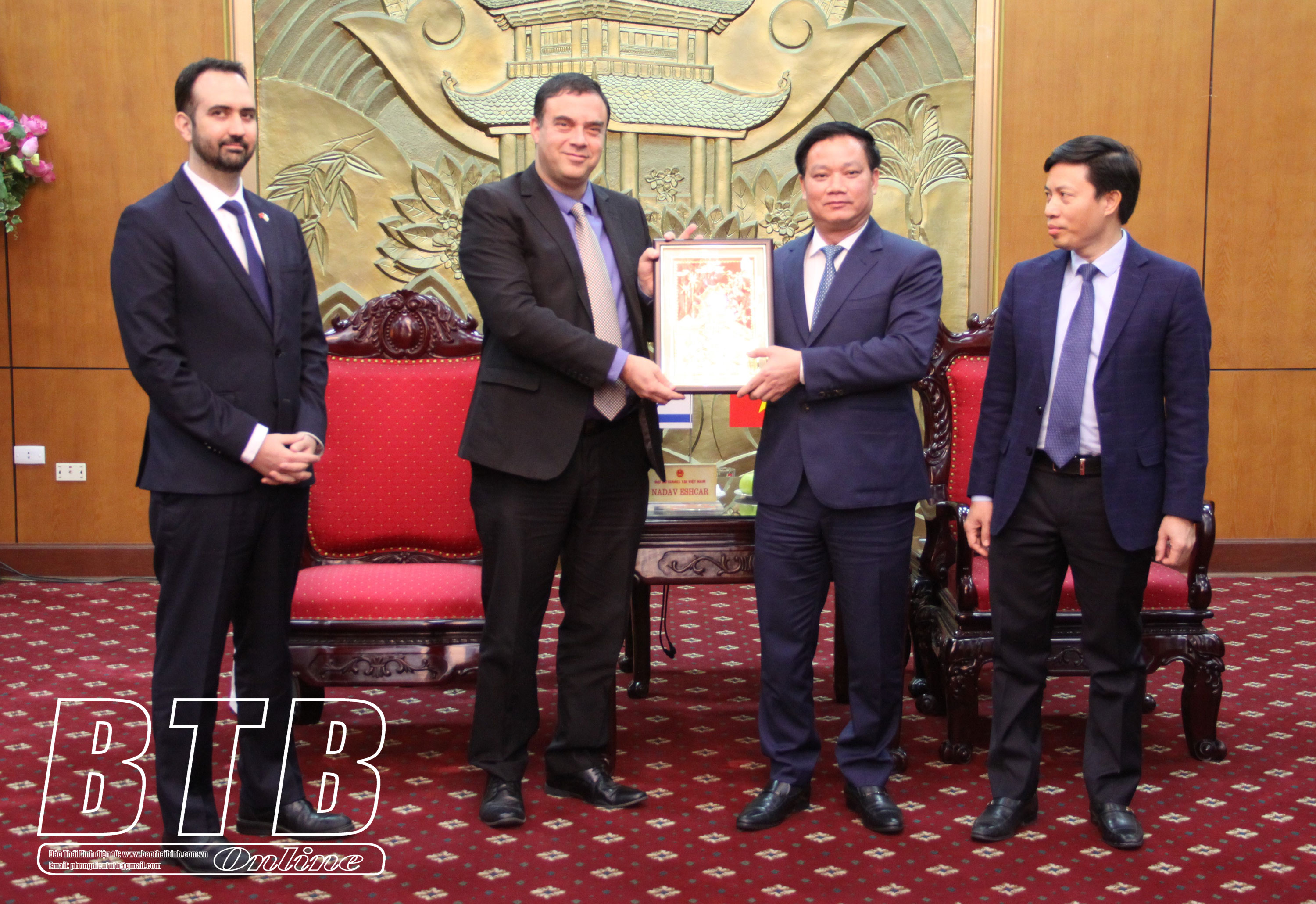 Đại sứ Israel tại Việt Nam cảm ơn sự đón tiếp chân tình, trọng thị của UBND tỉnh Thái Bình đối với đoàn công tác và giới thiệu khái quát về tình hình đất nước Isarael, đồng thời bày tỏ mong muốn được hợp tác, mở ra cơ hội kết nối giữa các doanh nghiệp của Israel đến đầu tư tại tỉnh Thái Bình trong các lĩnh vực, nhất là trong lĩnh vực sản xuất nông nghiệp.