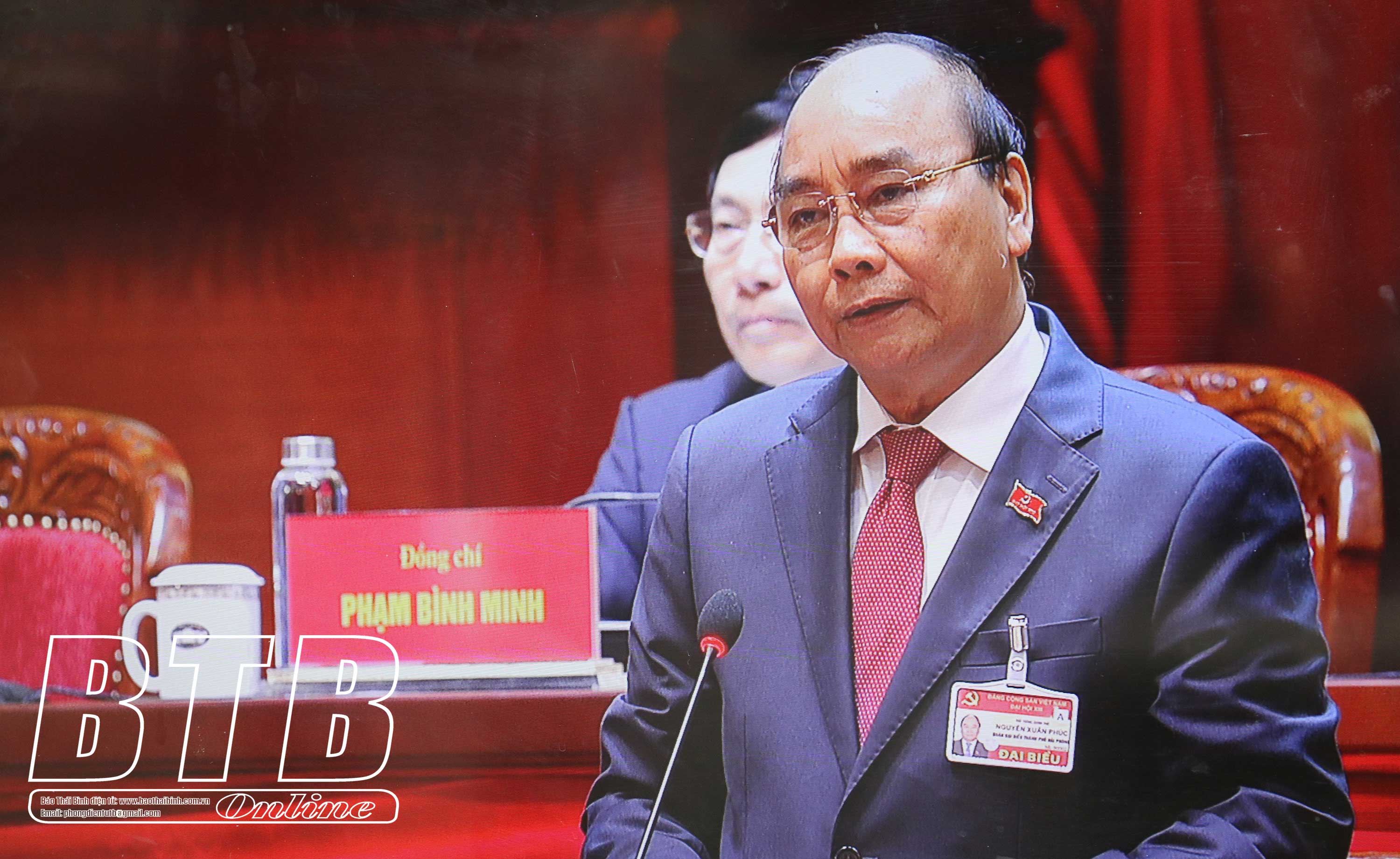Thay mặt Đoàn Chủ tịch Đại hội, đồng chí Nguyễn Xuân Phúc, Ủy viên Bộ Chính trị, Thủ tướng Chính phủ điều hành phiên thảo luận buổi sáng.