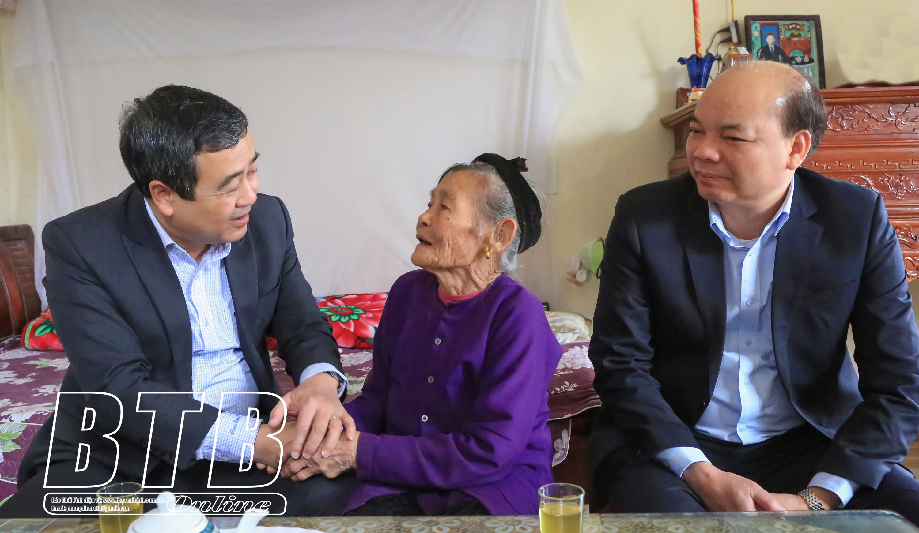 Đồng chí Ngô Đông Hải, Ủy viên Ban Chấp hành Trung ương Đảng, Bí thư Tỉnh ủy thăm hỏi, tặng quà mẹ liệt sĩ Phạm Thị Tải, thôn Trực Nho, xã Minh Quang, huyện Vũ Thư.