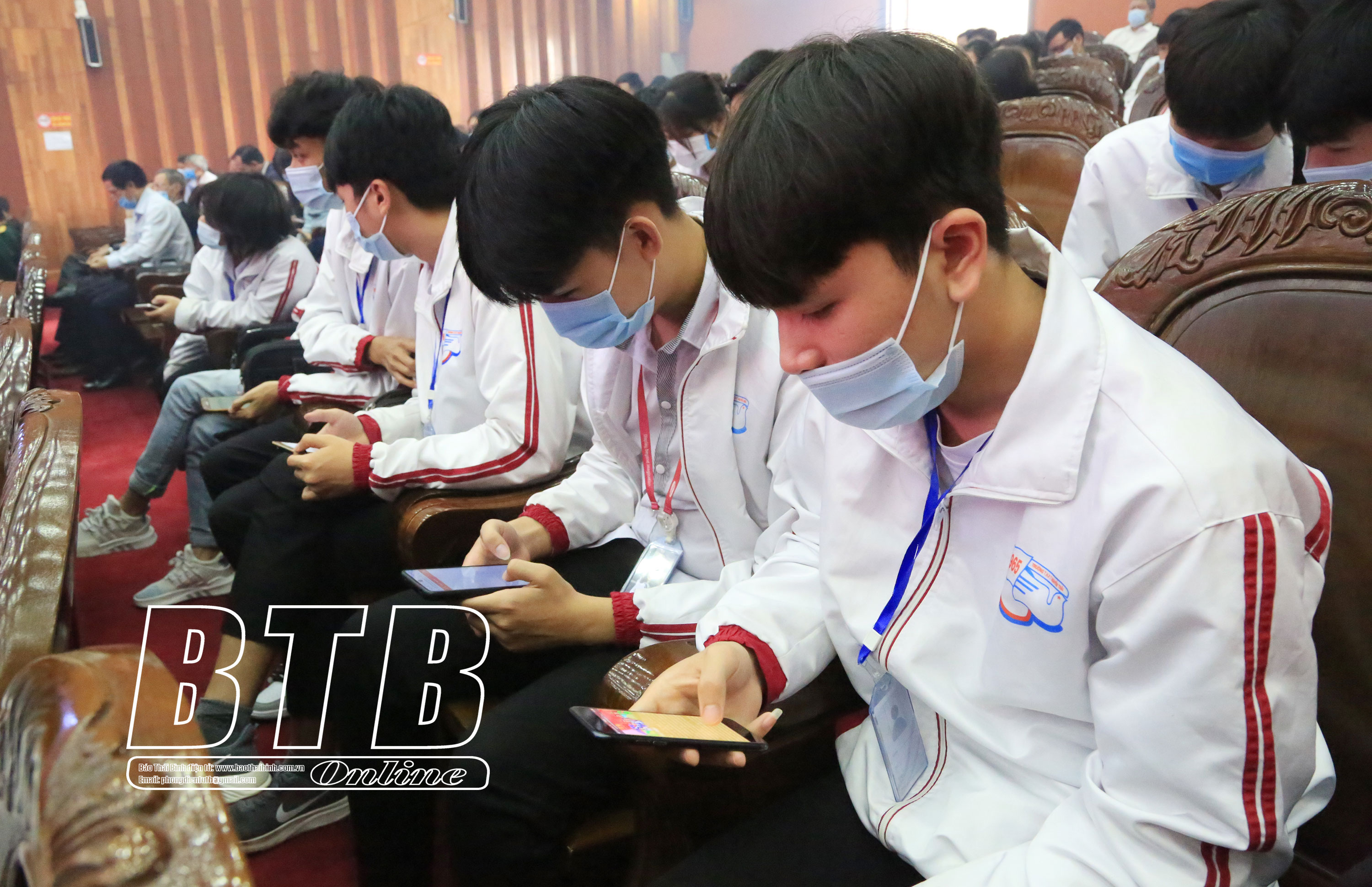 Đoàn viên, thanh niên, học sinh hưởng ứng tham gia cuộc thi qua điện thoại di động. Ảnh: Thành Tâm