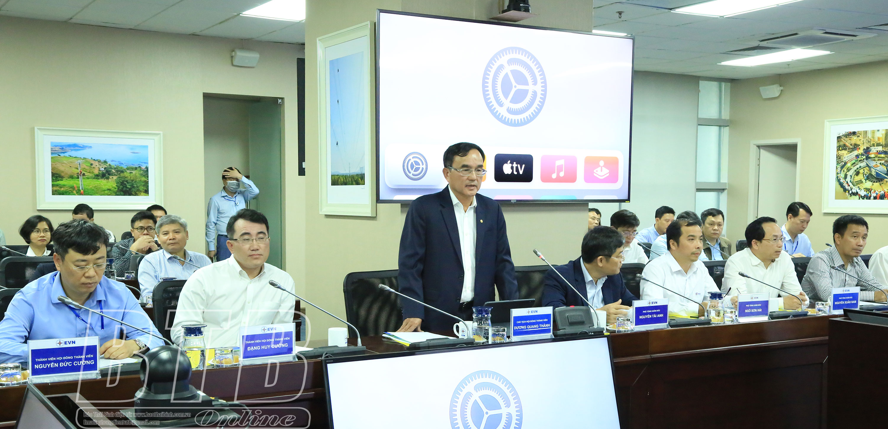 Đồng chí Dương Quang Thành, Chủ tịch Hội đồng thành viên Tập đoàn Điện lực Việt Nam phát biểu tại buổi làm việc. Ảnh: Thành Tâm