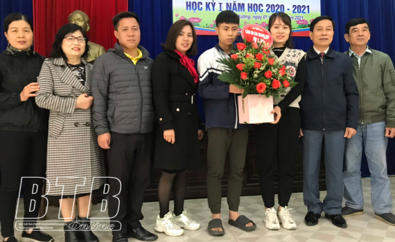 Trước tấm gương dũng cảm cứu người bị đuối nước, Ban Giám hiệu và Đoàn Thanh niên nhà trường đã kịp thời khen thưởng, động viên em Trần Quang Huy.