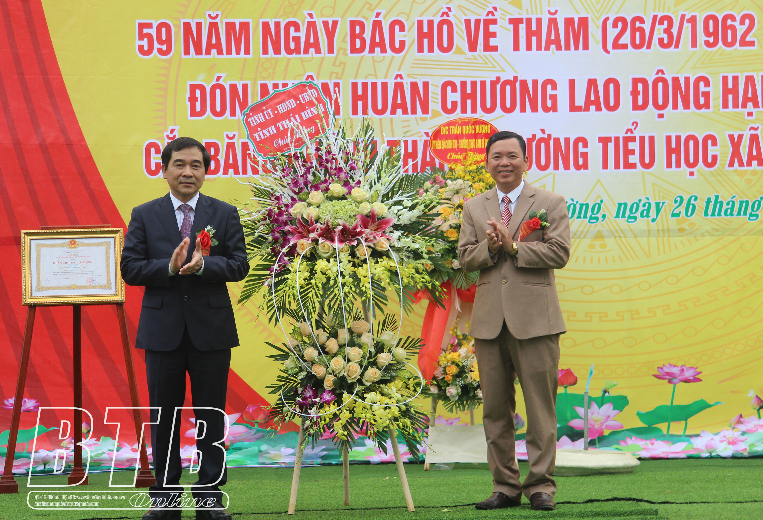 Nhân dịp này, các đồng chí: Trần Quốc Vượng, nguyên Ủy viên Bộ Chính trị, nguyên Thường trực Ban Bí thư Trung ương Ðảng; Nguyễn Tiến Thành, Phó Bí thư thường trực Tỉnh ủy, Chủ tịch HÐND tỉnh; Nguyễn Khắc Thận, Phó Bí thư Tỉnh ủy, Chủ tịch UBND tỉnh; các đồng chí Ủy viên Ban Thường vụ Tỉnh ủy và lãnh đạo huyện Tiền Hải đã cắt băng khánh thành Trường Tiểu học Nam Cường.