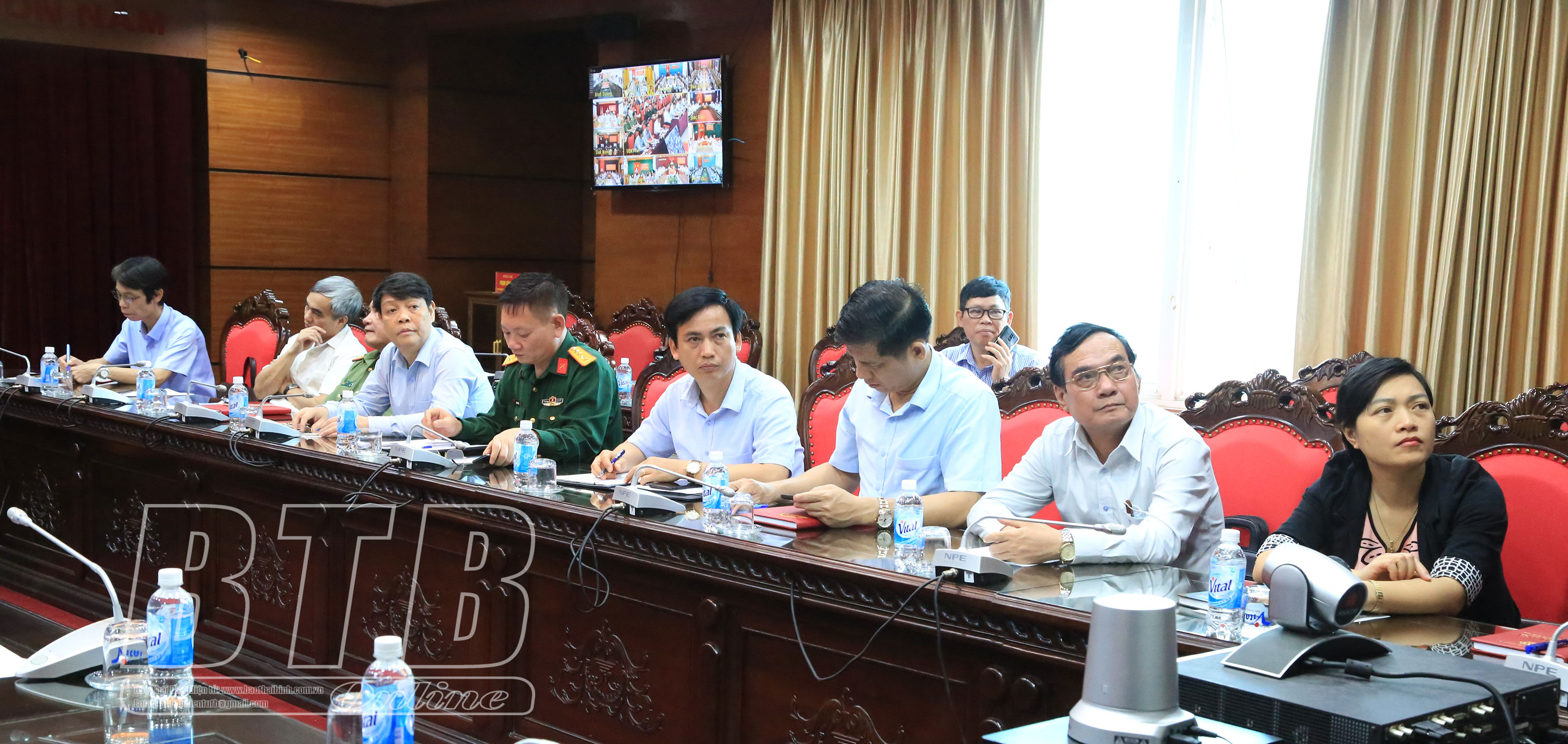 Đại biểu dự hội nghị trực tuyến tại điểm cầu tỉnh Thái Bình. Ảnh: Thành Tâm
