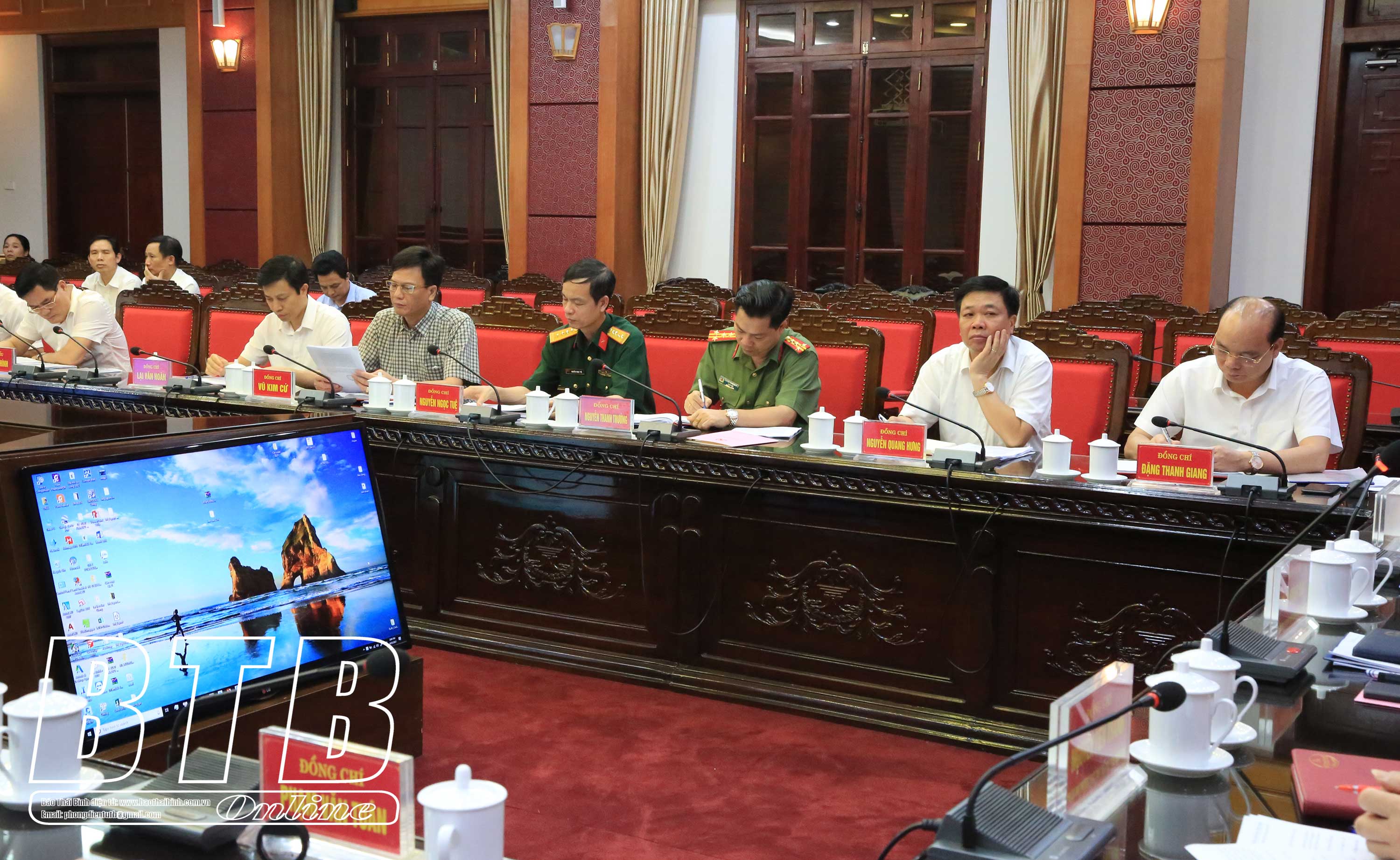 Các đồng chí: Ngô Đông Hải, Ủy viên Ban Chấp hành Trung ương Đảng, Bí thư Tỉnh ủy; Nguyễn Tiến Thành, Phó Bí thư thường trực Tỉnh ủy, Chủ tịch HĐND tỉnh; Nguyễn Khắc Thận, Phó Bí thư Tỉnh ủy, Chủ tịch UBND tỉnh chủ trì hội nghị.