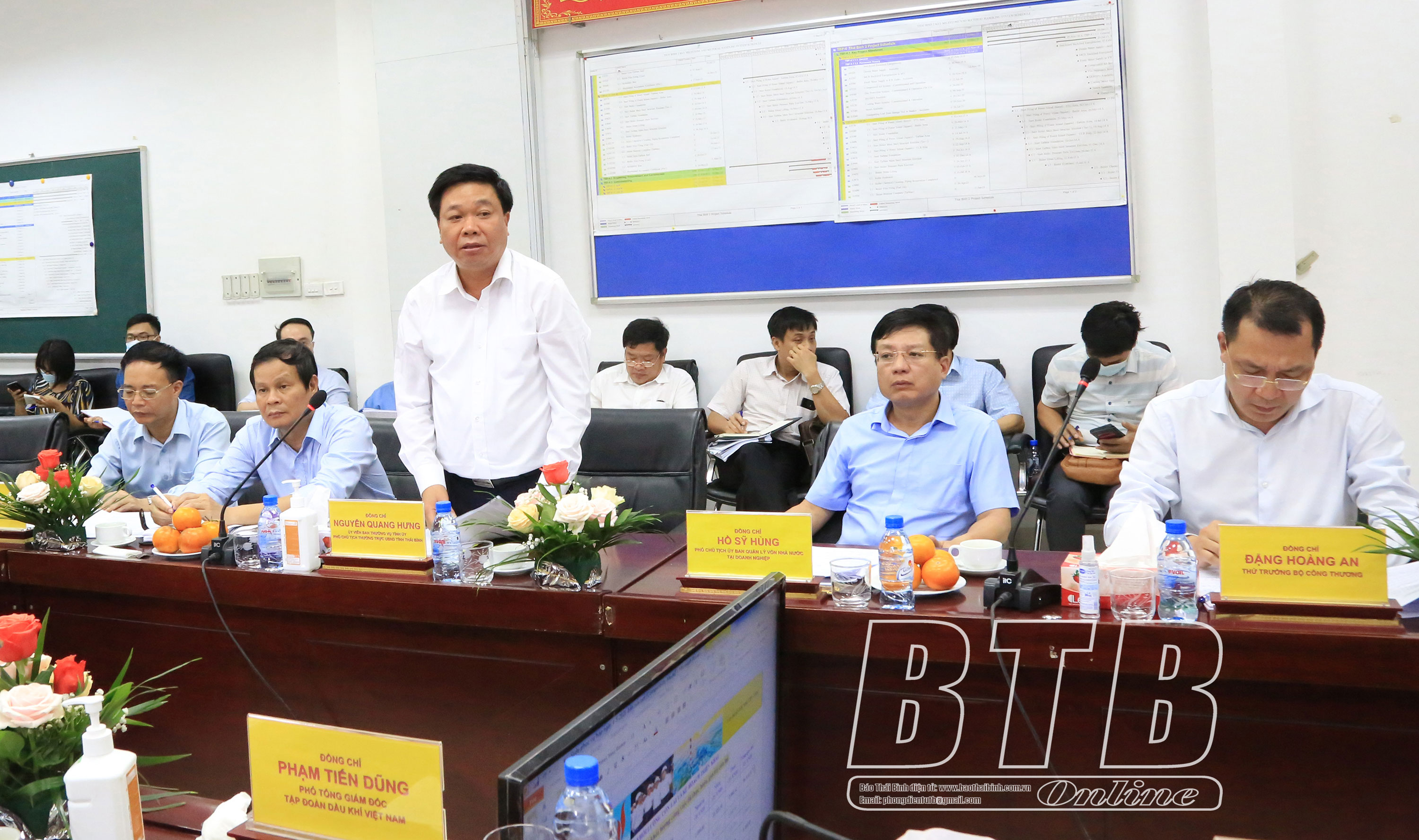 Phát biểu tại buổi làm việc, đồng chí Nguyễn Quang Hưng, Ủy viên Ban Thường vụ Tỉnh ủy, Phó Chủ tịch thường trực UBND tỉnh khẳng định: Đây là dự án có ý nghĩa lớn đối với phát triển kinh tế không chỉ của riêng Thái Bình mà cả vùng duyên hải Bắc bộ, vì vậy UBND tỉnh cam kết sẽ phối hợp với các bộ, ngành chức năng; đồng thời, chỉ đạo các sở, ngành liên quan của tỉnh tạo điều kiện thuận lợi nhất để Tập đoàn Dầu khí Việt Nam hoàn chỉnh thủ tục, triển khai dự án theo đề nghị của Tập đoàn và quy định của pháp luật, sớm đưa Nhà máy vào hoạt động.