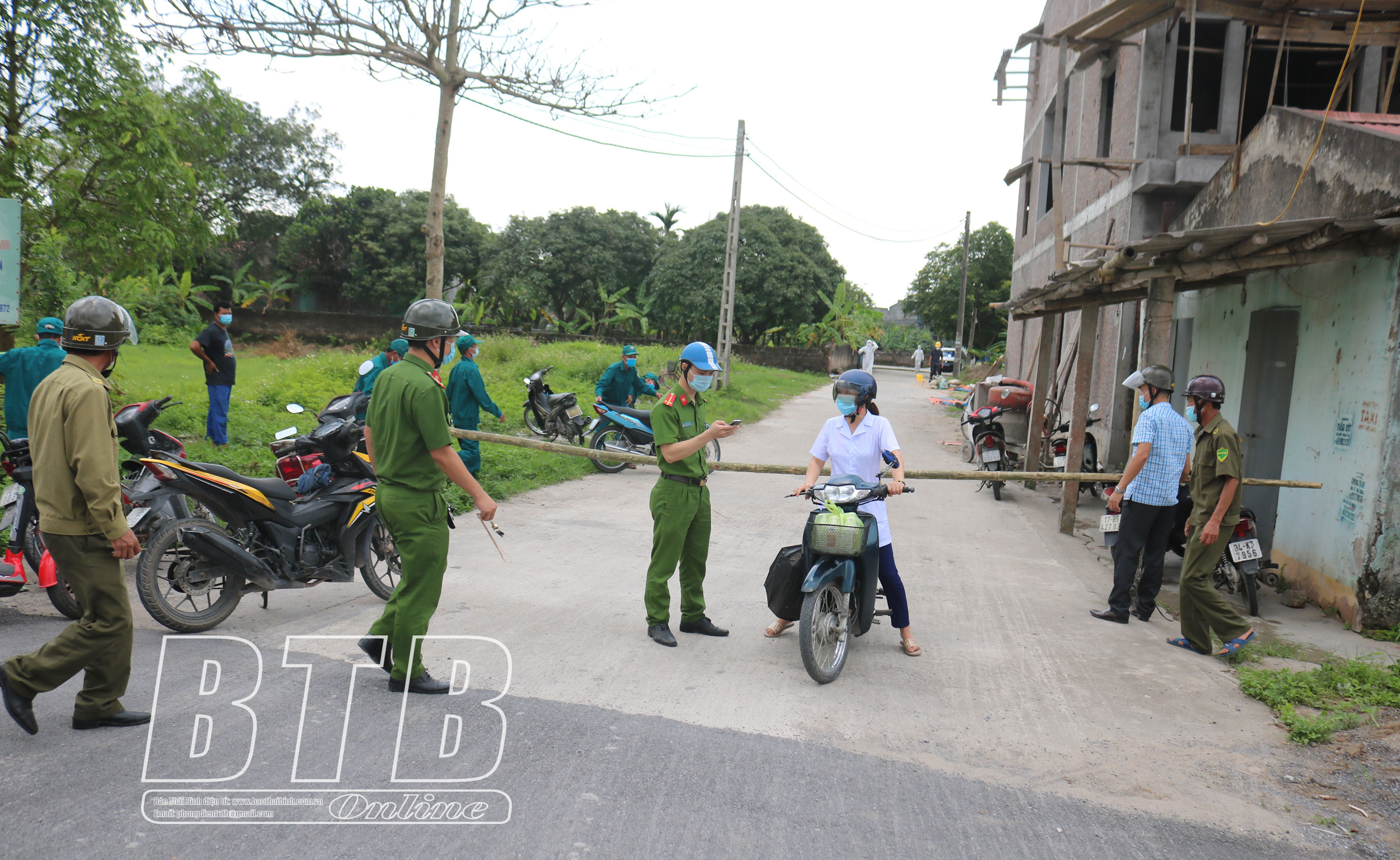 Lực lượng chức năng tổ chức phong tỏa thôn Thái Thuần, xã An Thái (Quỳnh Phụ)- địa bàn ghi nhận ca dương tính với SARS-CoV-2 .