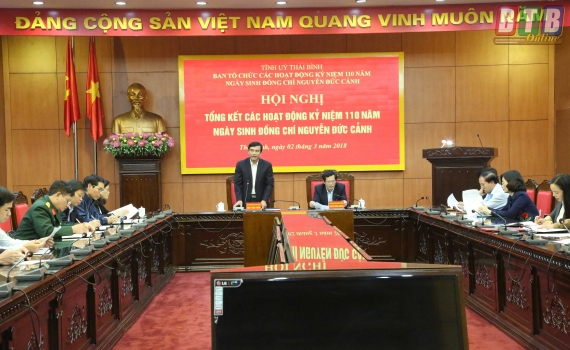 Đồng chí Phó Bí thư thường trực Tỉnh ủy, Chủ tịch HĐND tỉnh cũng biểu dương các thành viên Ban Tổ chức đã thực hiện tốt nhiệm vụ được phân công, góp phần quan trọng tổ chức thành công các hoạt động kỷ niệm. Đồng chí đề nghị trong thời gian tới, các cơ quan, đơn vị, địa phương có liên quan tiếp tục tuyên truyền sâu rộng ý nghĩa việc tổ chức các hoạt động kỷ niệm 110 năm ngày sinh đồng chí Nguyễn Đức Cảnh; xây dựng kế hoạch tuyên truyền về thân thế sự nghiệp, những đóng góp to lớn của đồng chí Nguyễn Đức Cảnh và các bậc tiền bối của Đảng đối với phong trào cách mạng Việt Nam. Gắn tuyên truyền về thân thế sự nghiệp của đồng chí Nguyễn Đức Cảnh với các ngày lễ, ngày kỷ niệm lớn của đất nước, của địa phương. Ban Tuyên giáo Tỉnh ủy hoàn thiện và lưu trữ các tài liệu hội thảo, các tư liệu trong chuỗi các hoạt động kỷ niệm để phục vụ công tác tuyên truyền trong thời gian tới. Cấp ủy, chính quyền từ tỉnh đến cơ sở tiếp tục quán triệt, tuyên truyền, vận động cán bộ, đảng viên, các tầng lớp nhân dân đẩy mạnh học tập và làm theo tư tưởng, đạo đức, phong cách Hồ Chí Minh gắn với học tập và làm theo tấm gương kiên trung của nhà cách mạng tiền bối Nguyễn Đức Cảnh. Huyện Thái Thụy huy động các nguồn lực hoàn thiện xây dựng các hạng mục công trình trong Khu lưu niệm đồng chí Nguyễn Đức Cảnh cho xứng tầm với công lao, những đóng góp to lớn của đồng chí Nguyễn Đức Cảnh.