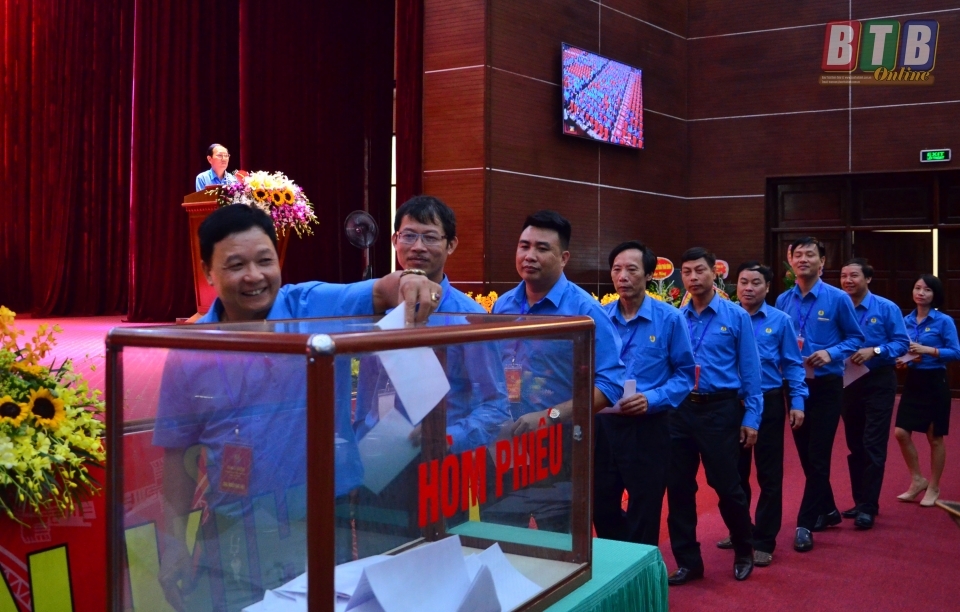 Các đại biểu bỏ phiếu bầu Ban chấp hành Công đoàn tỉnh khóa 2018.