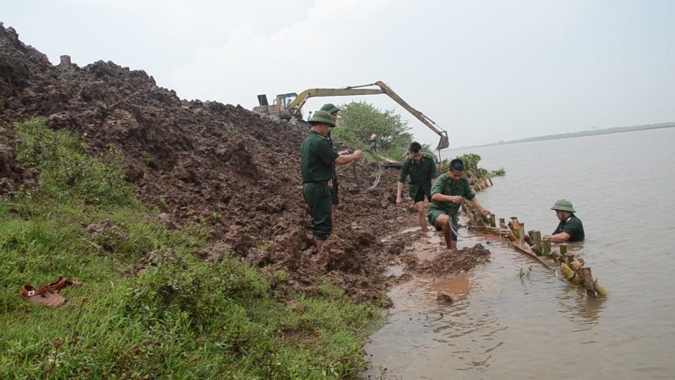 Một số khu vực xung yếu đã kịp thời được củng cố trước khi bão số 3 đổ bộ. Ảnh: Thu Thủy
